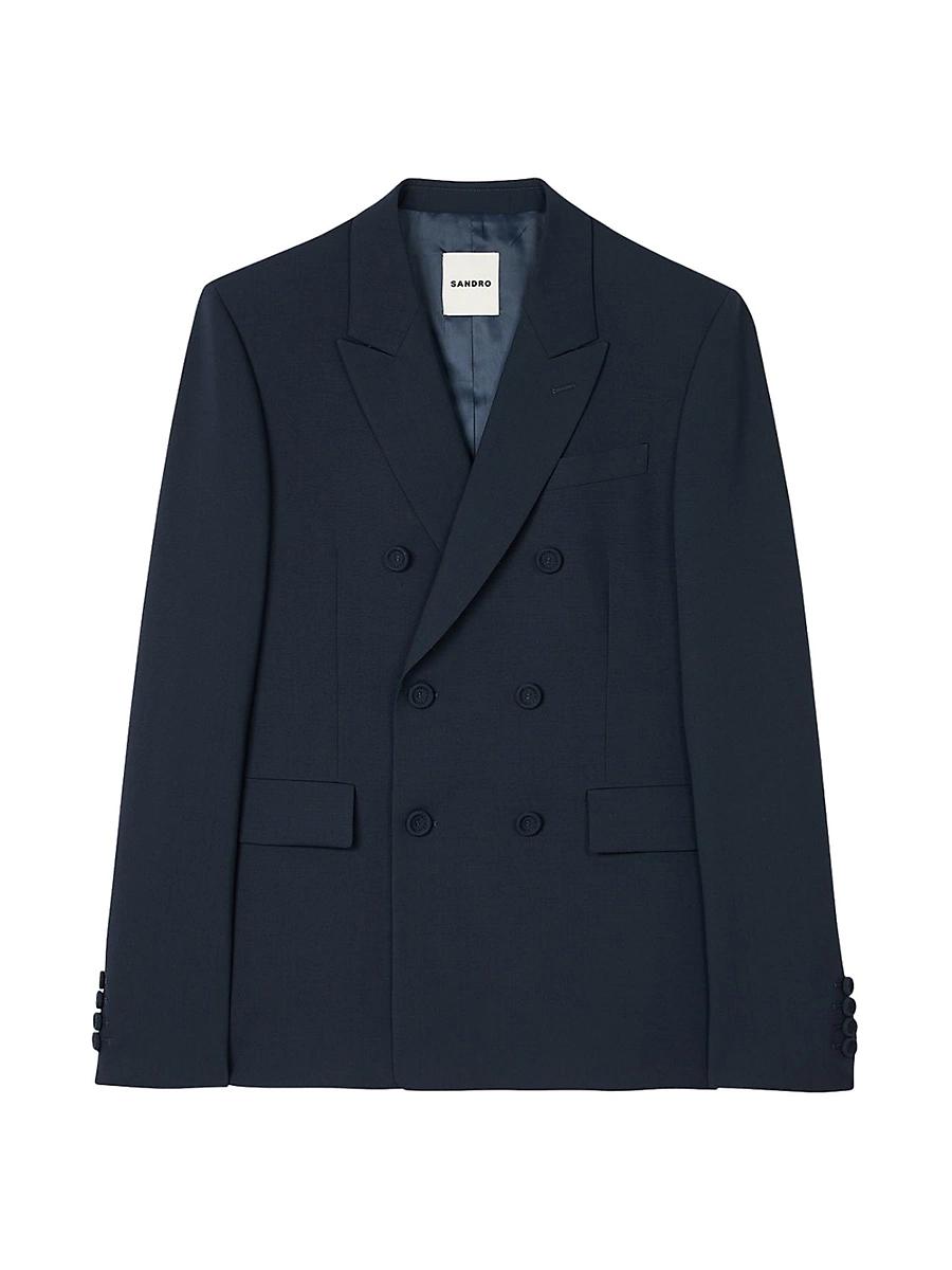 Double-breasted suit jacket with long sleeves, lapel collar and flap pockets. Sandro Mens double-breasted suit jacket Double-breasted with 6 buttons Long sleeves with button cuffs Vent at the back Main fabric: 100% virgin wool Body lining: 55% polyester, 45% viscose Pocket lining: 65% polyester, 35% cotton Imported SIZE & FIT Model measurements: 62 Model is wearing a size 48. Lsd Rtw - Sandro > Sandro > Saks Fifth Avenue > Barneys. Sandro. Color: Navy Blue. Size: 40.