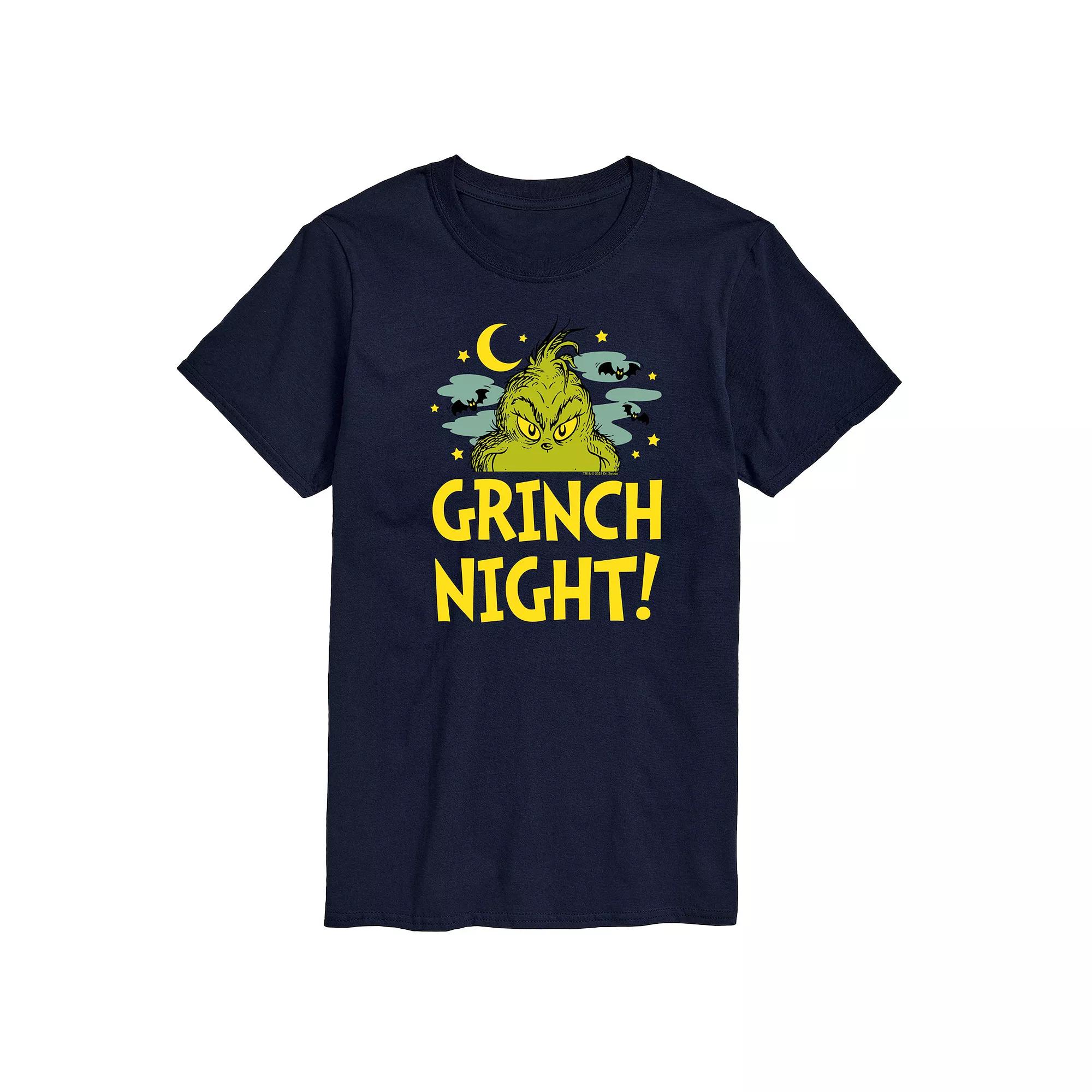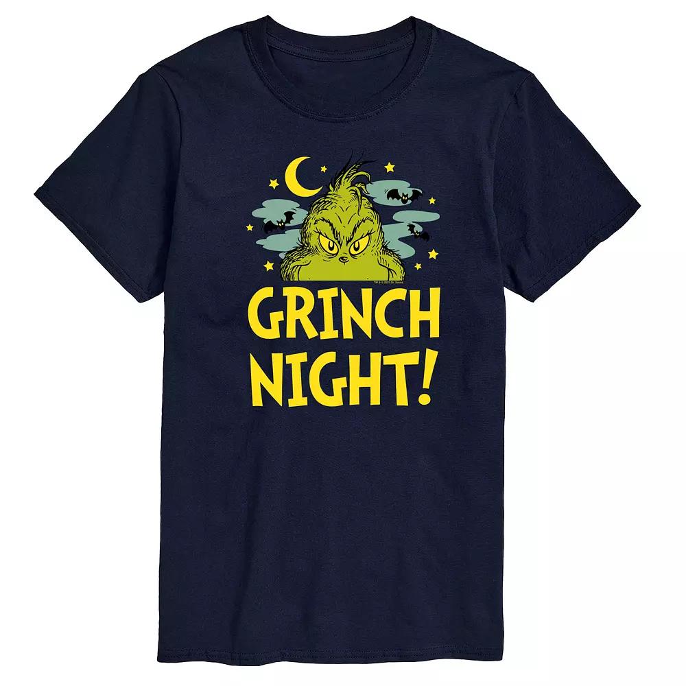 Give your wardrobe a spooktacular refresh with this Mens Dr. Seuss Grinch Night Graphic Tee. Give your wardrobe a spooktacular refresh with this Mens Dr. Seuss Grinch Night Graphic Tee. FEATURES Crewneck Short sleeveFABRIC & CARE Solid Color: Cotton ; Heather Colors: Cotton/Polyester Machine wash Imported Color: Navy. Gender: male. Age Group: adult.