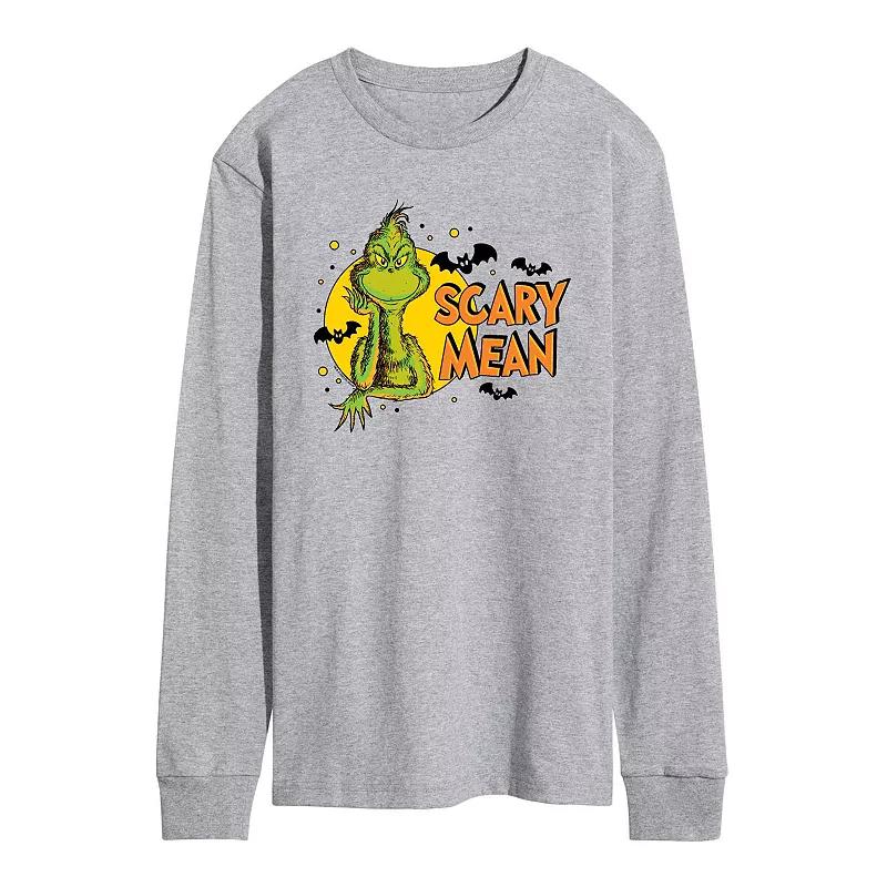 Give your wardrobe a spooktacular refresh with this Mens Dr. Seuss Grinch Scary Mean Long Sleeve Graphic Tee. Give your wardrobe a spooktacular refresh with this Mens Dr. Seuss Grinch Scary Mean Long Sleeve Graphic Tee. FEATURES Crewneck Long sleeveFABRIC & CARE Solid Color: Cotton ; Heather Colors: Cotton/Polyester Machine wash Imported Size: XS. Color: Heather Gray. Gender: male. Age Group: adult.