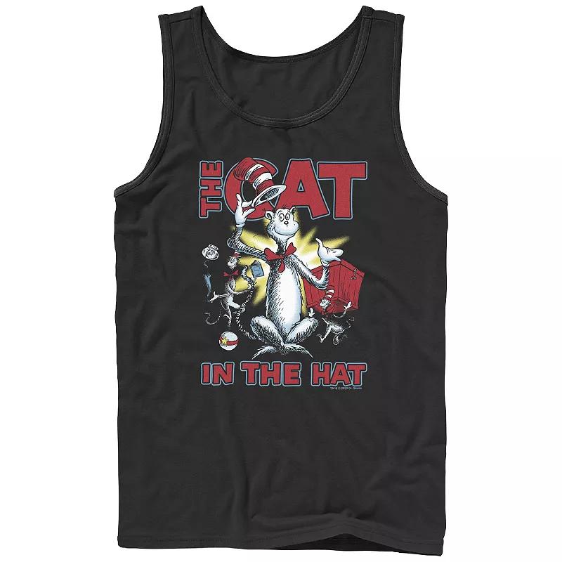 You'll love the fit and feel of this men's Dr. Seuss The Cat In The Hat Cattitude graphic tank.You'll love the fit and feel of this men's Dr. Seuss The Cat In The Hat Cattitude graphic tank.FEATURES Crewneck SleevelessFABRIC & CARE Cotton Machine wash Imported Size: XXL. Color: Black. Gender: male. Age Group: adult.