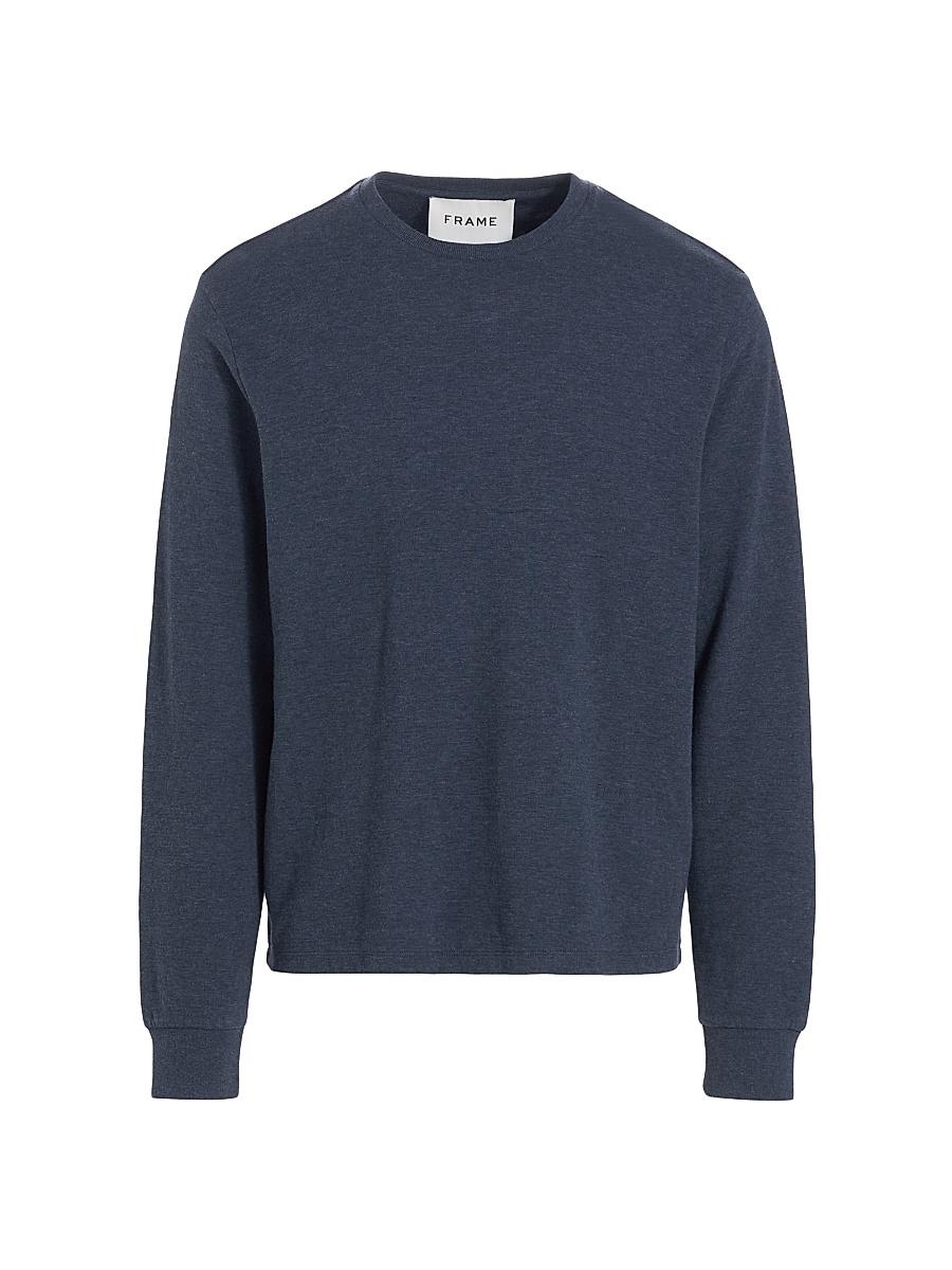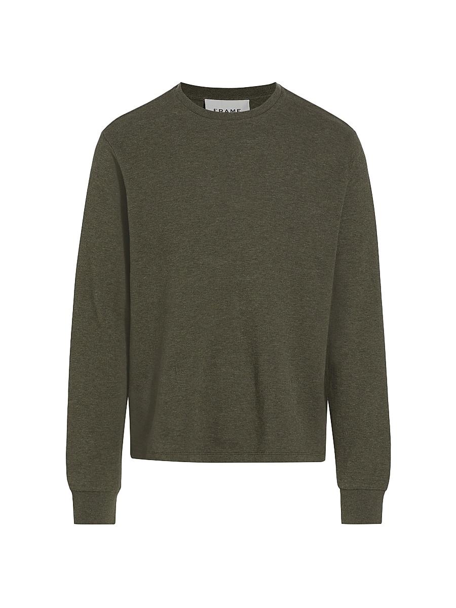Crafted of cotton, this classic long-sleeved T-shirt is a casual addition to any wardrobe. Crewneck Long sleeves Pullover style Rib-knit trim 100% cotton Machine wash Imported SIZE & FIT About 27.5 from shoulder to hem Model measurements: 62 tall Model measurements: chest 40 Model is wearing a US size Medium ABOUT THE BRAND In 2012, Erik Torstensson and Jens Grede combined their California-modern point of view with a European sensibility to establish Frame. The ready-to-wear label, first known for its denim, has expanded to leather, cashmere and tailoring-all with an effortless ethos at the core. Focusing on quality fabrics and foundational dressing, the brand delivers chic everyday staples favored by Hollywood starlets and beyond. Mens Denim & Contemp - Contemp Denim And Bottom > Frame > Saks Fifth Avenue > Barneys. Frame. Color: Heather Olive Green. Size: XXL.