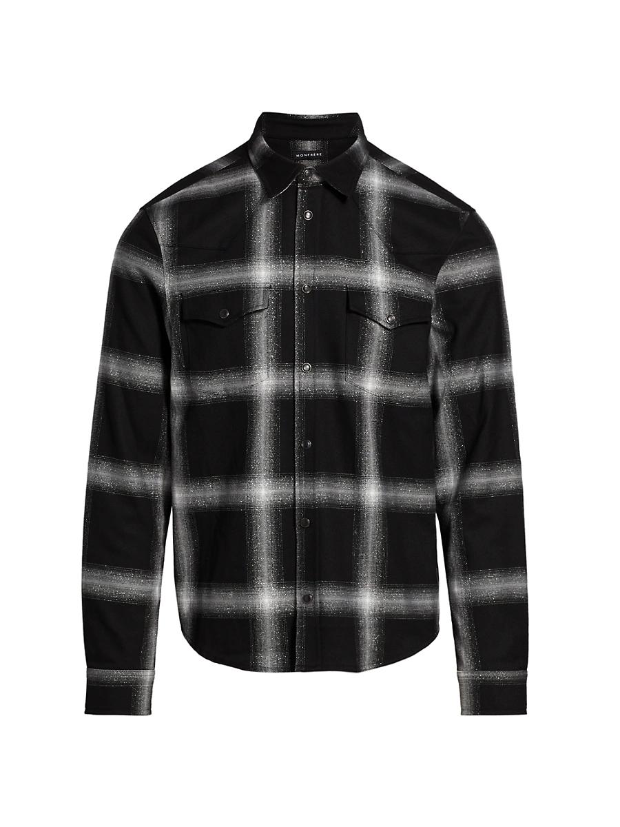 Monfrres Eastwood shirt is styled with a bold check and flap pockets. Spread collar Long sleeves Front flap pockets Button-front closure 64% polyester/34% viscose/2% elastane Dry clean Imported SIZE & FIT About 26.5 from shoulder to hem Model measurements: 62 tall, 31 waist Model is wearing a US size Medium. Mens Denim & Contemp - Contemp Denim And Bottom > Monfrre > Saks Fifth Avenue > Barneys. Monfrre. Color: Noir. Size: Small.