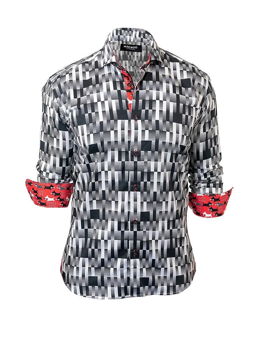 Dogs peek from the collar, placket and cuffs of an eye-catching Egyptian-cotton shirt tailored for a fit thats in between trim and regular. Front button closure Spread collar Long sleeves with button cuffs 100% cotton Hand wash, dry flat Made in Turkey