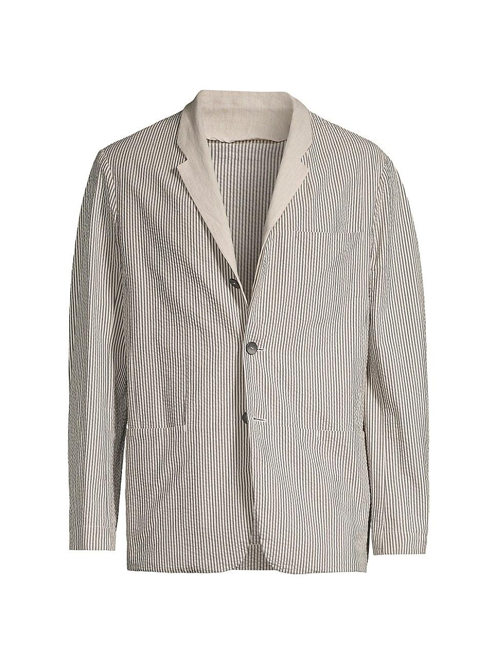 SEASEs Ellen blazer features stripe details on a seersucker design. Crafted of crisp cotton, this unstructured jacket offers a comfortable look. Notch lapels Long sleeves Chest welt pocket Side slip pockets Button-front closure 100% cotton Dry clean Made in Italy SIZE & FIT Model measurements: 62 tall, 40 chest, 31 waist Model is wearing a US size Medium. Mens Modern Coll & Outer - Active Lifestyle > Sease > Saks Fifth Avenue > Barneys. Sease. Color: Pearl Grey. Size: Medium.