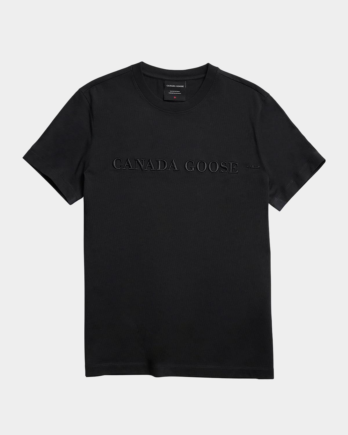 Canada Goose "Emersen" T-shirt with tonal wordmark embroidery Crew neckline Short sleeves Relaxed fit Pullover style Cotton Machine wash cold, line dry Made in Portugal