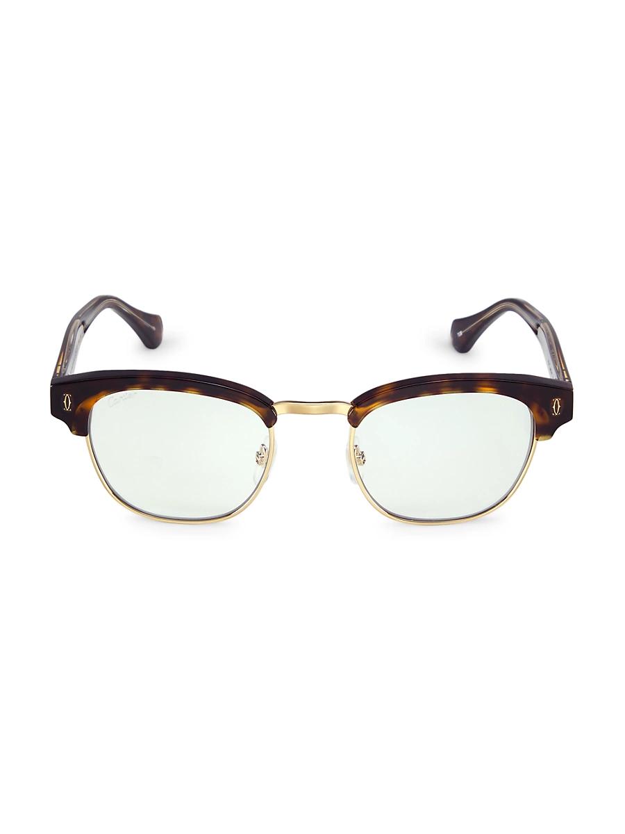 From the Essentials Collection. These Cartier sunglasses sport a retro, rectangular shape. These shades feature Photochromatic lenses, which darken when exposed to sunlight. Blue light blocking photocromatic lenses 100% UV protection Acetate Made in Italy SIZE 52mm lens width 21mm bridge width 145mm temple length. Soft Accessories - Men Sunglasses > Cartier > Saks Fifth Avenue > Barneys. Cartier. Color: Havana.
