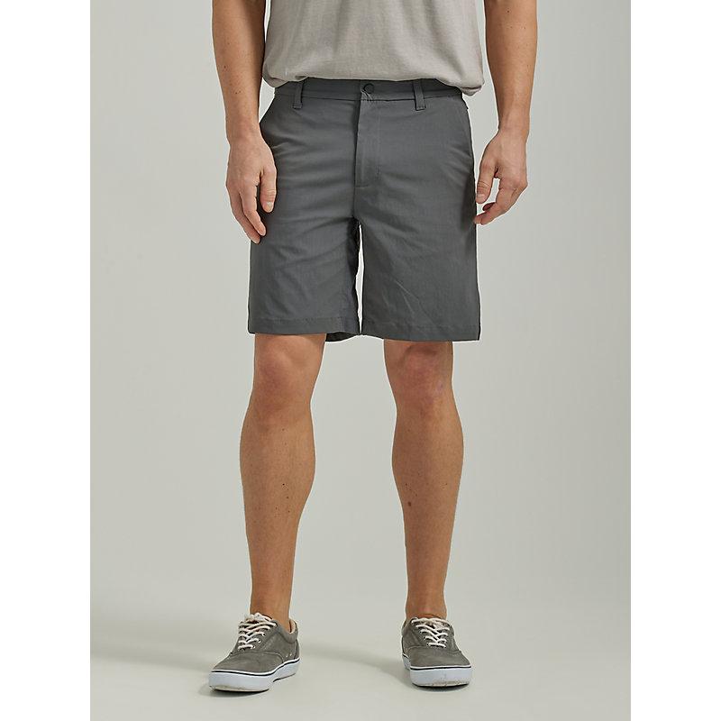 Lee synthetic fabrics are comfier and sturdier than ever. Take our Extreme Motion Synthetic Flat Front Short. Theyre just as comfortable as our cotton short, but with bonuses like four-way comfort stretch, moisture wicking, and odor control technology. That means this is the perfect short for everything from biking, to hiking, to lounging around the house. Theres even a hidden phone pocket to free up some space. Theyre also crafted with some recycled material, so now your shorts can be as eco-friendly as they are good-looking and versatile. 96% Nylon, 4% Spandex. Charcoal. 30.