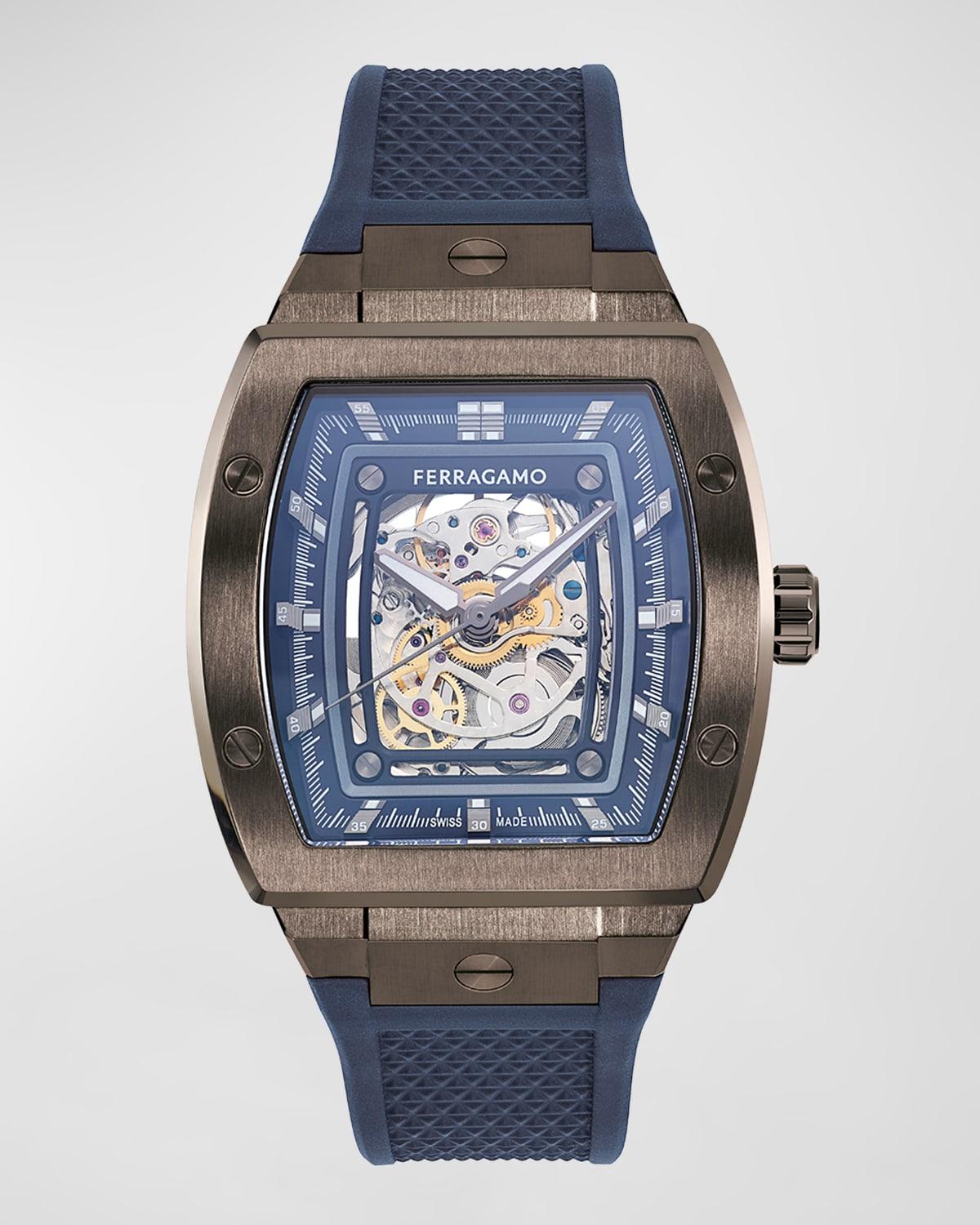 Mens F-80 Tonneau Skeleton Rubber-Strap Watch, 42mm