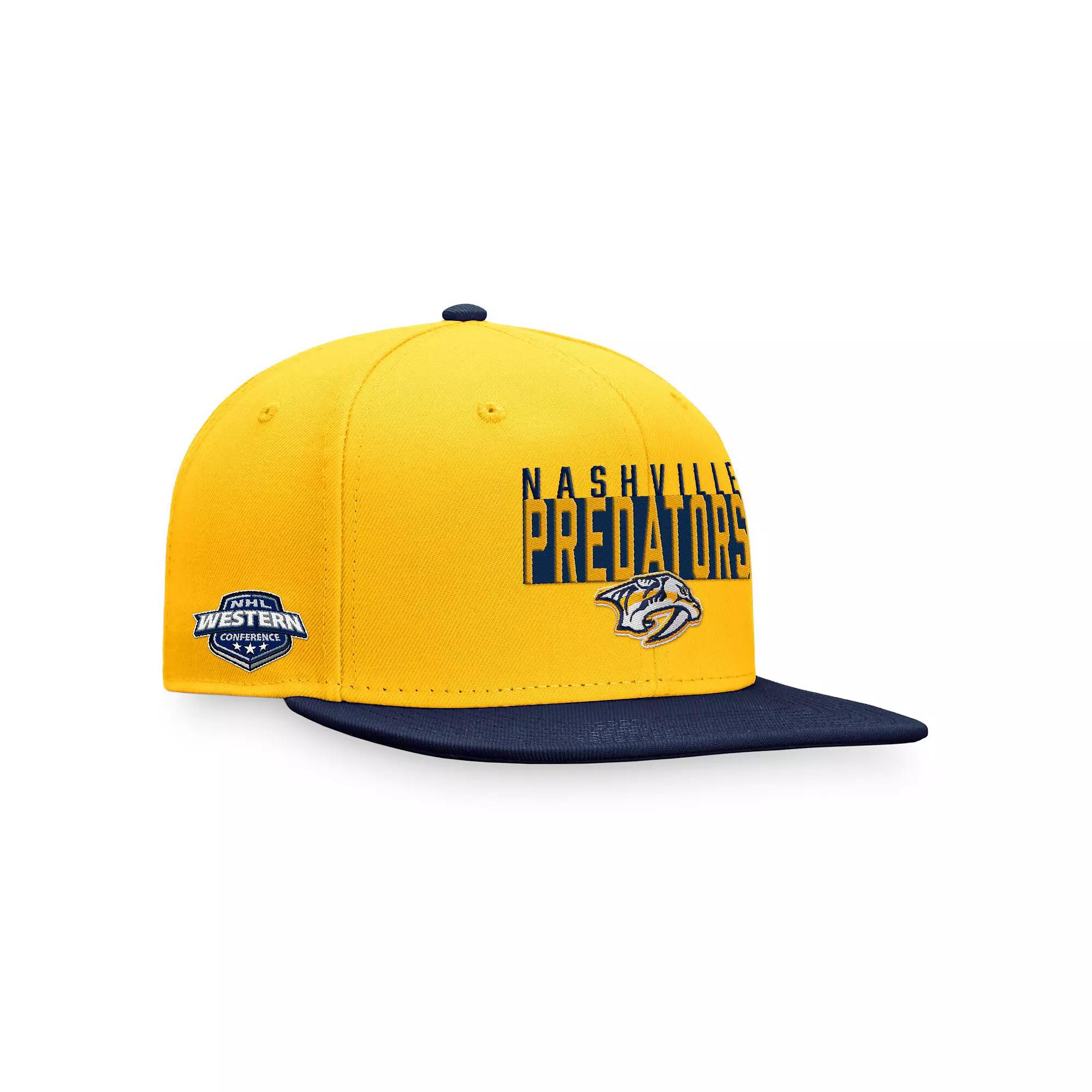 Pay a nod to your NHL squad by adding this bold Nashville Predators Fundamental Colorblocked hat from Fanatics Branded to your wardrobe. It features an embroidered Nashville Predators graphic on the front panels, two-toned colors and a classic street-ready look fit for game day. The snap closure easily adjusts to your liking, so youll be more than ready to cheer on your favorites when you reach for this cap.Pay a nod to your NHL squad by adding this bold Nashville Predators Fundamental Colorblocked hat from Fanatics Branded to your wardrobe. It features an embroidered Nashville Predators graphic on the front panels, two-toned colors and a classic street-ready look fit for game day. The snap closure easily adjusts to your liking, so youll be more than ready to cheer on your favorites when you reach for this cap.Officially licensedStructured fitFlat billHigh CrownWipe clean with a damp clothEmbroidered graphics with raised detailsImportedSnapbackSix panels with eyeletsOne size fits mostMaterial: 100% PolyesterBrand: Fanatics Branded Color: PDT GOLD. Gender: male. Age Group: adult. Material: COTTON.