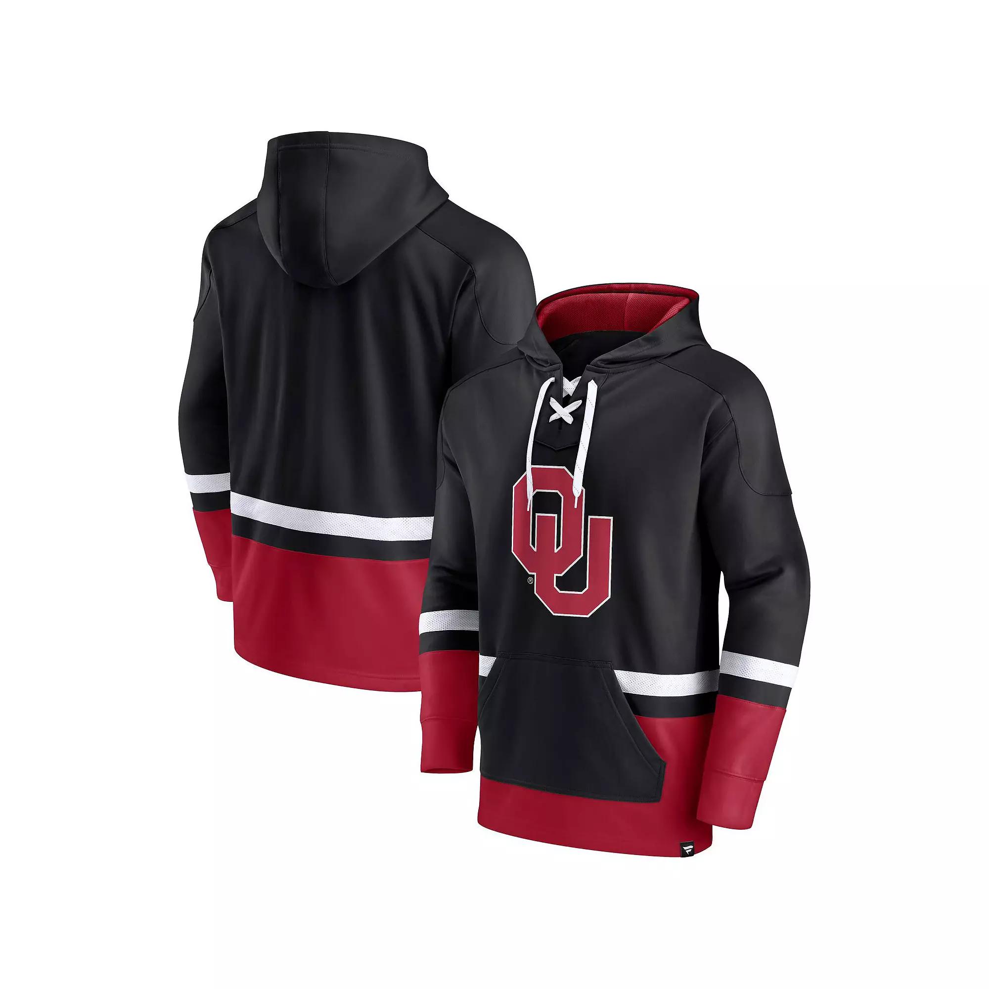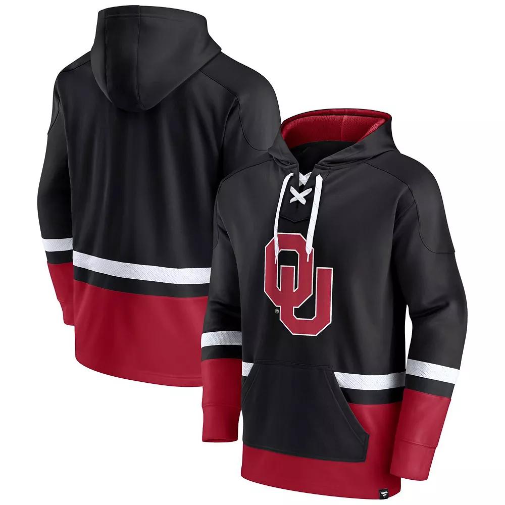 Get ready to proudly proclaim your Oklahoma Sooners fandom in this First Battle hoodie. With a contrasting colorway accentuating the Oklahoma Sooners graphics, this Fanatics Branded pullover is an eye-catching way to root for your favorite collegiate team. With a lace-up neckline adding extra flair, it has you more geared up than ever for the next big game.Get ready to proudly proclaim your Oklahoma Sooners fandom in this First Battle hoodie. With a contrasting colorway accentuating the Oklahoma Sooners graphics, this Fanatics Branded pullover is an eye-catching way to root for your favorite collegiate team. With a lace-up neckline adding extra flair, it has you more geared up than ever for the next big game.PRODUCT FEATURESMachine wash, tumble dry lowMidweight hoodie suitable for moderate temperaturesMesh stripesPulloverMaterial: 100% PolyesterLace-up necklineHoodedOfficially licensedLong sleeveImportedMesh-lined hood without drawstringBrand: Fanatics BrandedHeat-sealed graphicsFront pouch pocketPullover Size: 2XL. Color: Black. Gender: male. Age Group: adult.