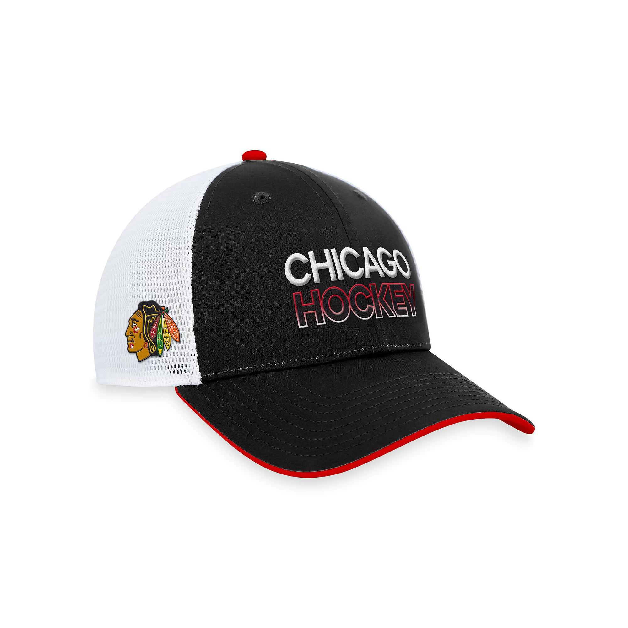 Sport the same gear as your favorite Chicago Blackhawks players with this Authentic Pro Rink Trucker Adjustable Hat from Fanatics Branded. Featuring a snapback closure and mesh panels, this Fanatics Branded cap offers breathability and a secure fit for all-day comfort. The vivid Chicago Blackhawks colors and graphics make this the obvious choice when youre getting ready for puck drop.