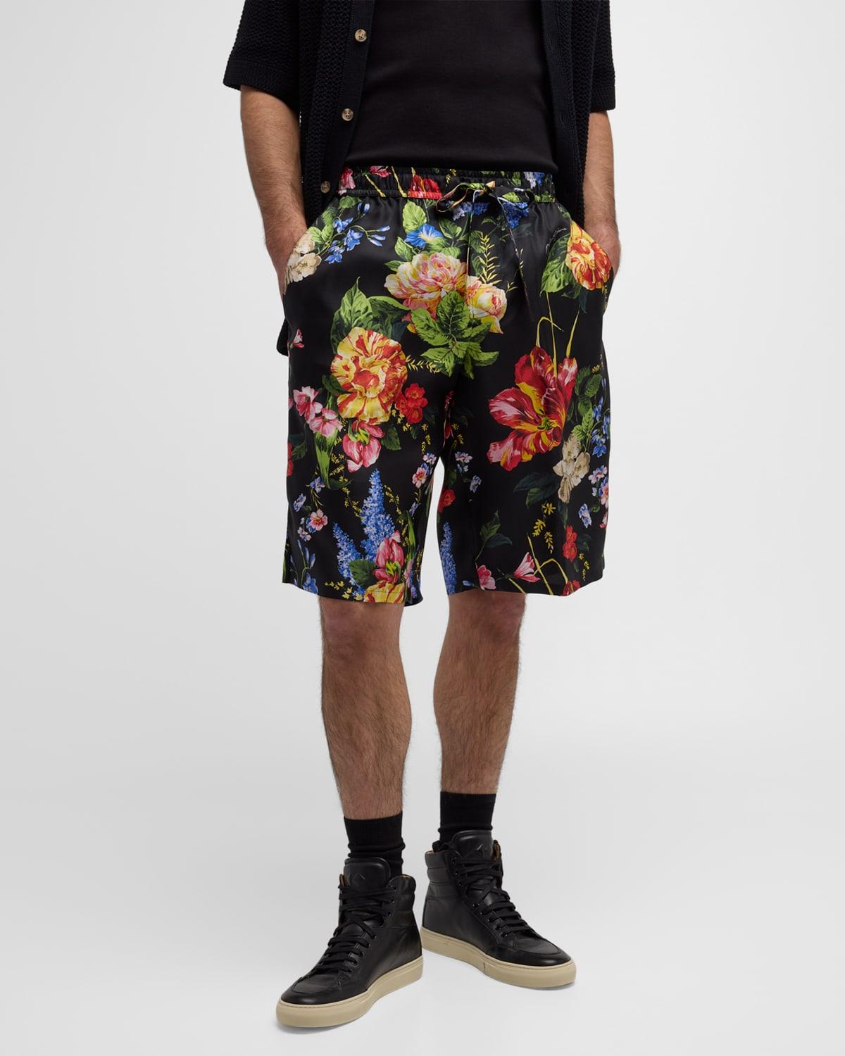 Mens Floral Silk Drawstring Shorts