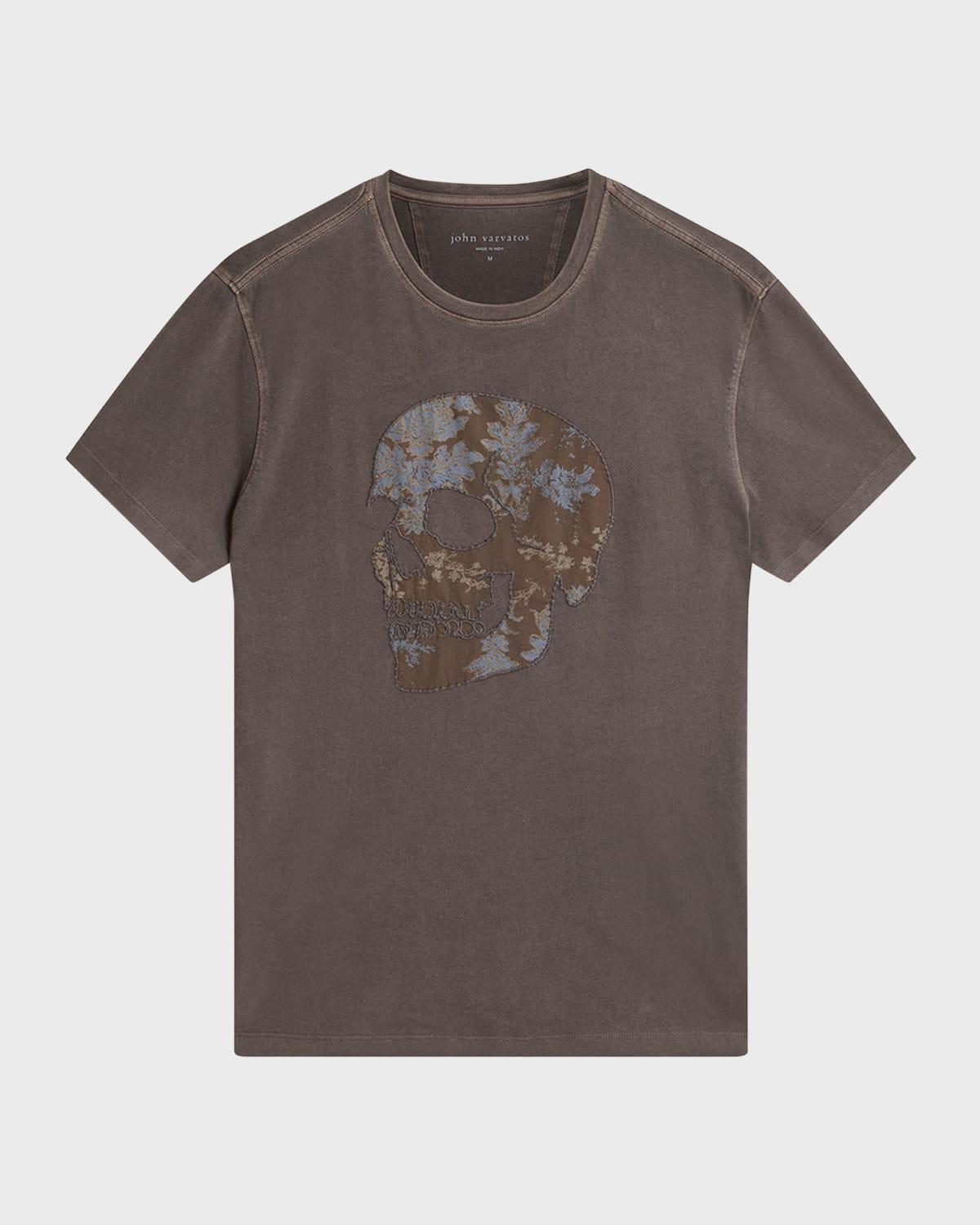 John Varvatos T-shirt featuring a floral skull appliqué at chest Crew neckline Short sleeves Pullover style Cotton Machine wash cold Imported Model is 6'1"/185cm.