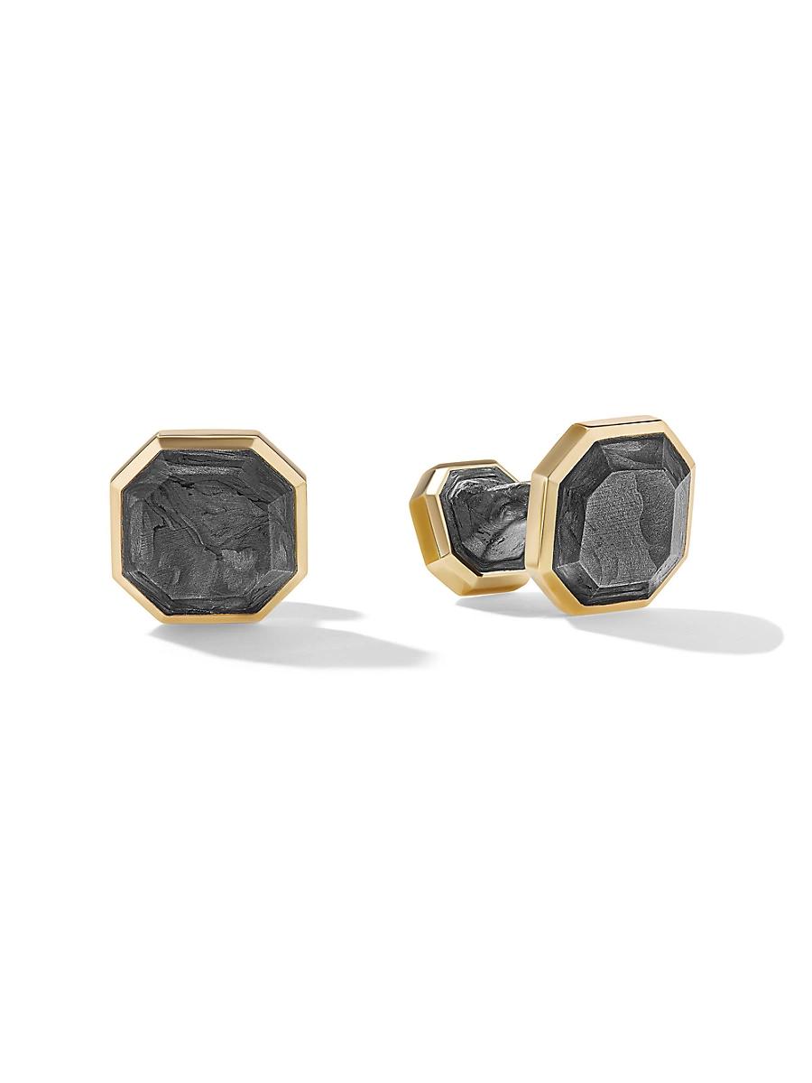 Mens Forged Carbon Cufflinks in 18K Yellow Gold, 15.5MM