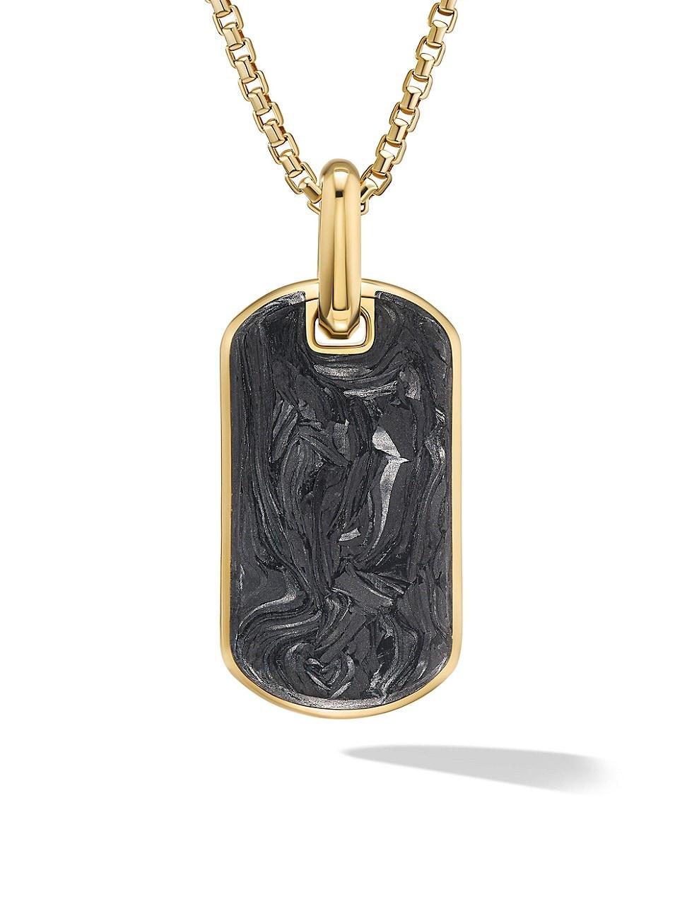 Forged carbon is a lightweight yet strong composite originally used in aeronautics and sports cars. For jewelry, David Yurman pioneered a technique which fuses the modern material and precious metal into innovative, graphic designs. 18-karat yellow gold Forged carbon Tag, 34.5 x 15.5mm Please note: tag only; chain sold separately Made in USA ABOUT THE BRAND David, a sculptor, and his wife, Sybil, a painter, launched their innovative jewelry brand in 1980 in New York City. Since then, the American design house has pioneered cutting-edge collections - from its iconic combination of sterling silver and diamonds to signature pinky rings. Today, with their son Evan, the Yurmans continue to deliver timeless pieces inspired by nature, art, ancient symbols and Manhattans stunning architecture. Lsd Jewelry - David Yurman > David Yurman > Saks Fifth Avenue > Barneys. David Yurman. Color: Forged Carbon.