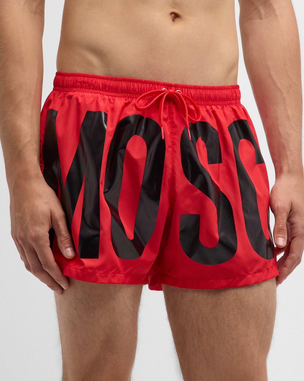 Moschino swim shorts with large, wraparound logoprint Elasticized drawstring waist Side slip pockets Casual legs Pull-on style Polyester Unlined Machine wash cold Made in Italy