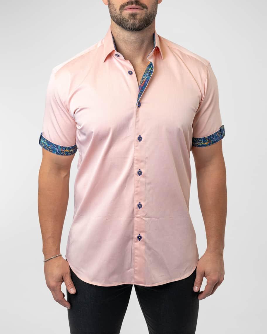 Maceoo Galileo Sorbet solid sport shirt with contrast trim Shaped fit accentuates the body while leaving room for comfortable movement Spread collar Button closure Short sleeves Shirttail hem Cotton/nylon/elastane Machine wash cold Imported