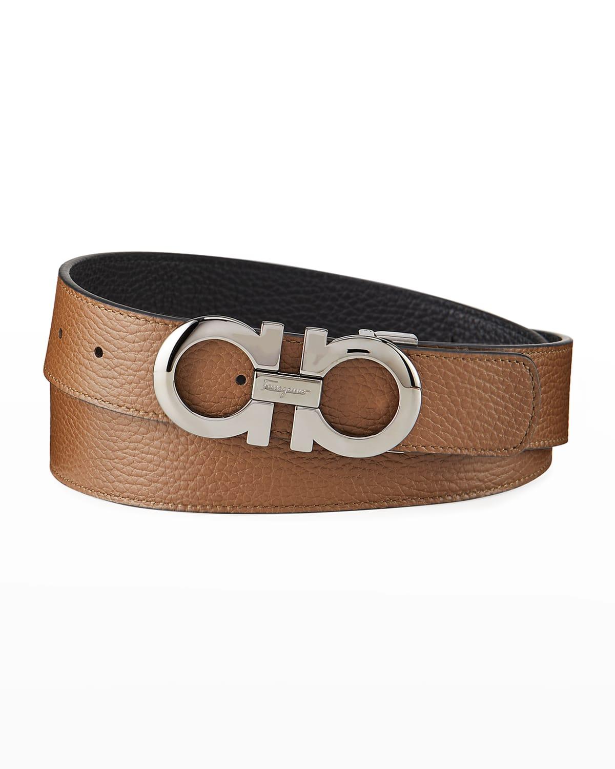 Salvatore Ferragamo Mens Double Gancini Reversible Pebbled Leather Belt