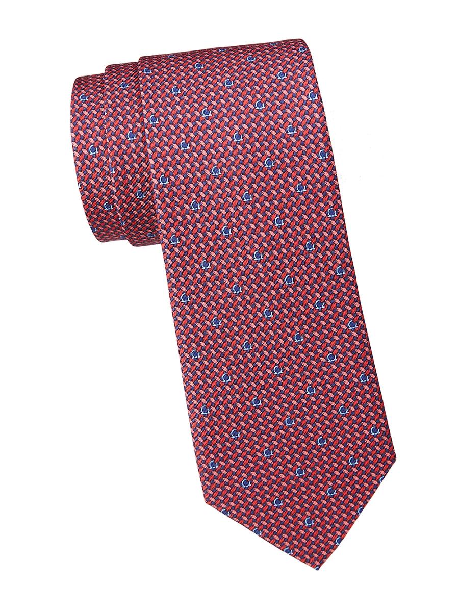 Showcasing an interwoven logo motif, this supple silk tie makes a classic statement. Silk Dry clean Made in Italy SIZE Width, about 3 ABOUT THE BRAND Italian designer Salvatore Ferragamo began his journey in 1927 with a vision of creating the worlds most beautiful shoes. The label expanded to menswear in the 1970s, and remains famed for its made-in-Italy pieces. The craftsmanship inherent in its shoes is also found in accessories like sunglasses, belts and ties. The brands signature Gancini logo-a backwards horseshoe-can be found on its classic loafers and fine leather goods. Men Luxury Coll - Designer Neckwear > Ferragamo > Saks Fifth Avenue > Barneys. FERRAGAMO. Color: Navy Blue.