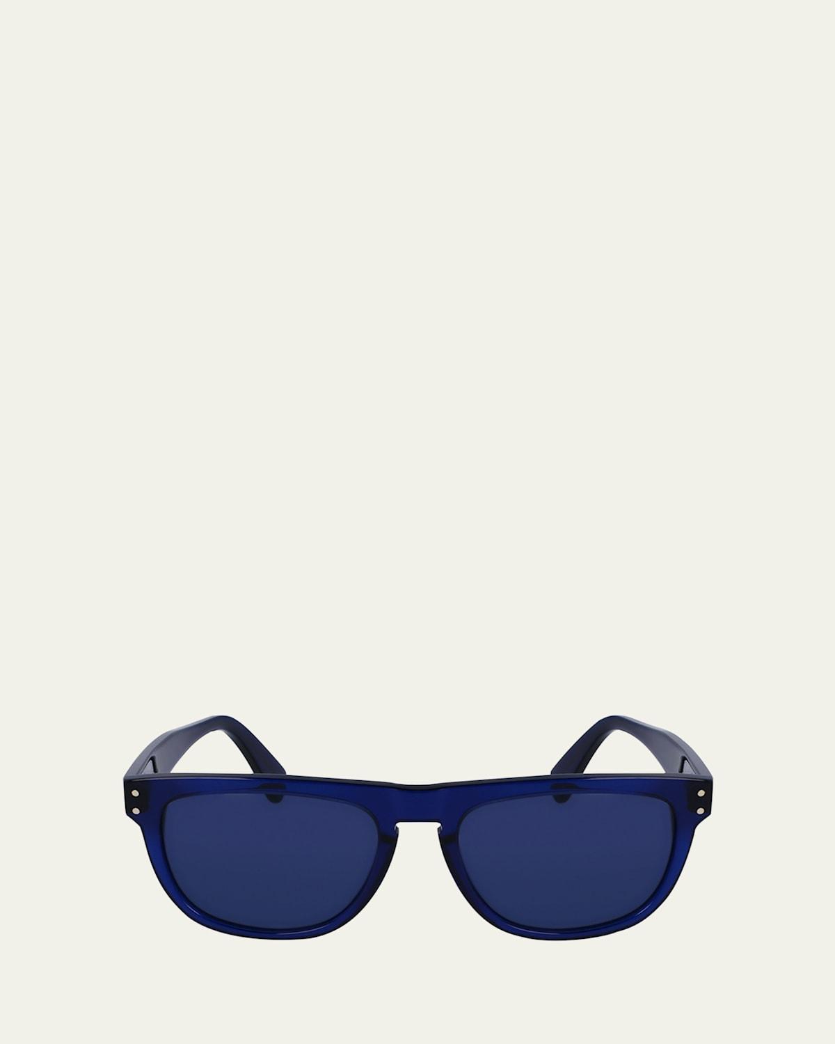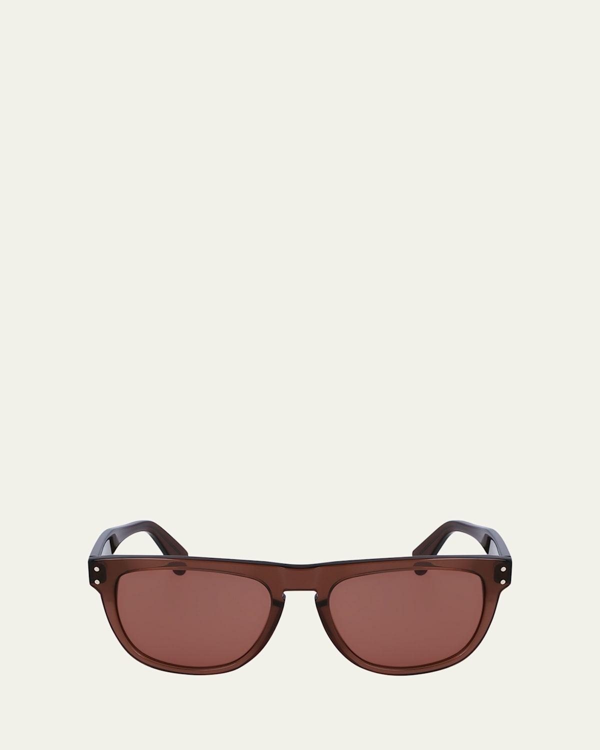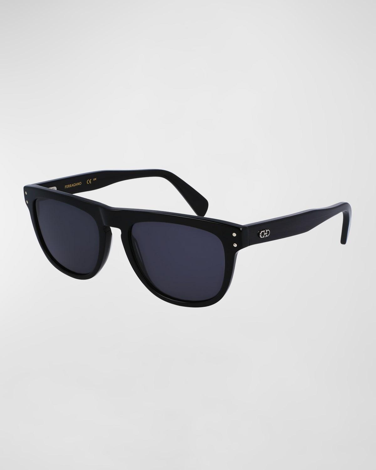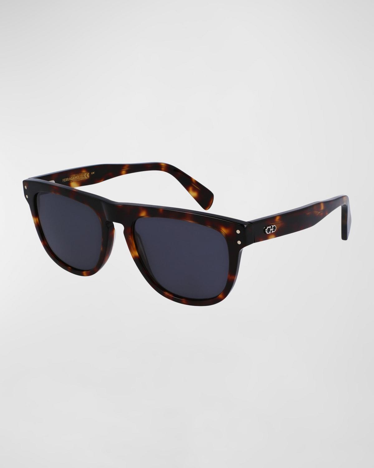 Ferragamo Gancini Tea Cup rectangle sunglasses with acetate frames Eye/bridge/temple (in mm): 55-18-150 Solid-color lenses Full-rim frames Keyhole nose bridge Gancini hardware at the temples Thin arms; curved temple tips Acetate Wipe clean 100% UVA/UVB protection Made in Italy