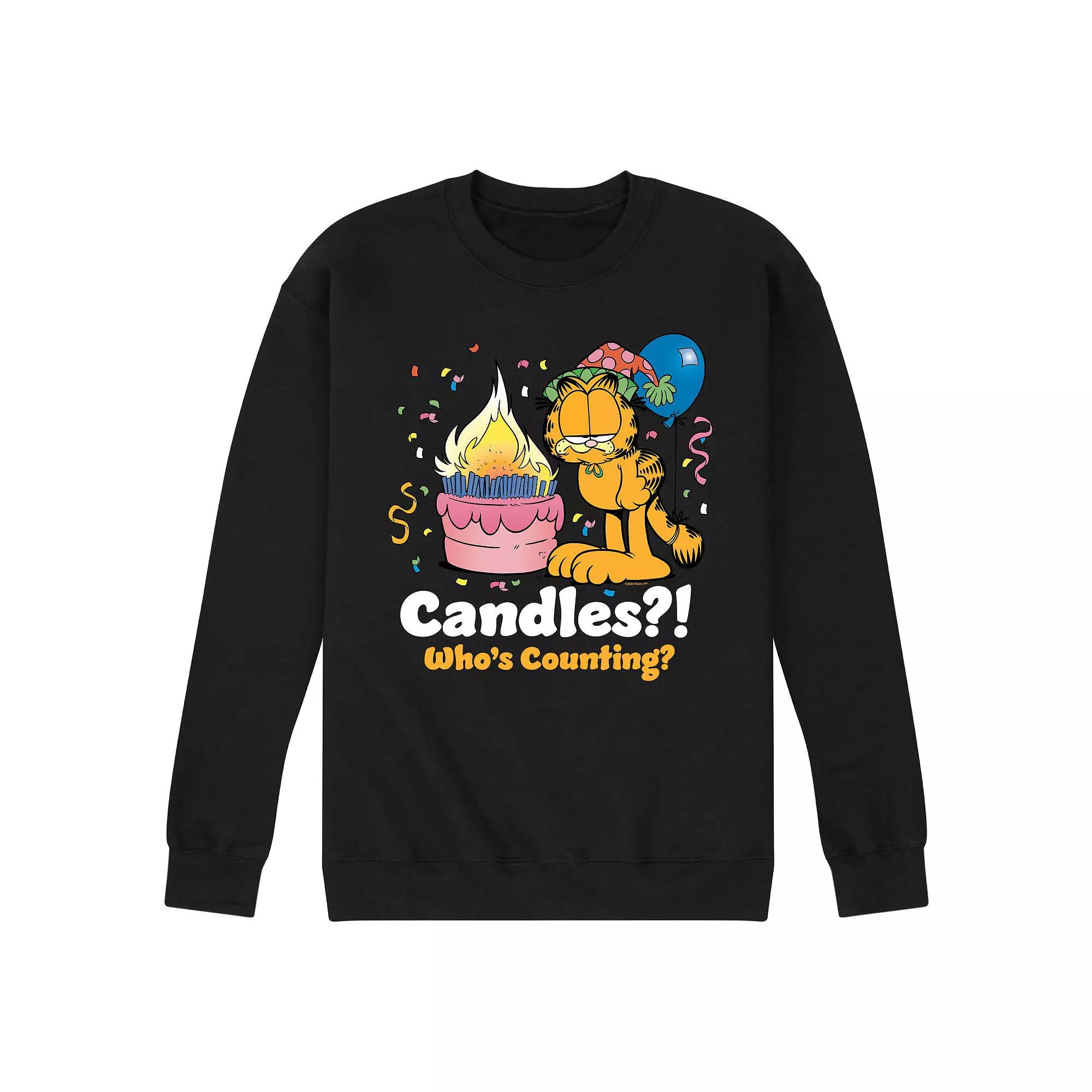Add new style to your casual wardrobe with this Mens Garfield Candles Whos Counting Graphic Tee. Add new style to your casual wardrobe with this Mens Garfield Candles Whos Counting Graphic Tee. FEATURES Crewneck Long sleeveFABRIC & CARE Cotton, polyester Machine wash Imported Color: Black. Gender: male. Age Group: adult.