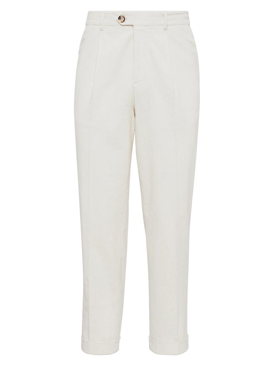 Garment-dyed leisure fit trousers in cotton narrow wale corduroy with pleats. Zip closure with button, metal hook and backing button Slanted front pockets Pleated Back welt pockets 18 cm (7.09) hem Leisure fit: the rise and seat are soft and the proportions of the leg are tapered Wash at a maximum temperature of 30, do not bleach. Do not tumble dry, iron at medium temperature 100% cotton Made in Italy. Lsd Rtw - Brunello Cucinelli Rtw > Brunello Cucinelli > Saks Fifth Avenue > Barneys. Brunello Cucinelli. Color: Off White. Size: 34.