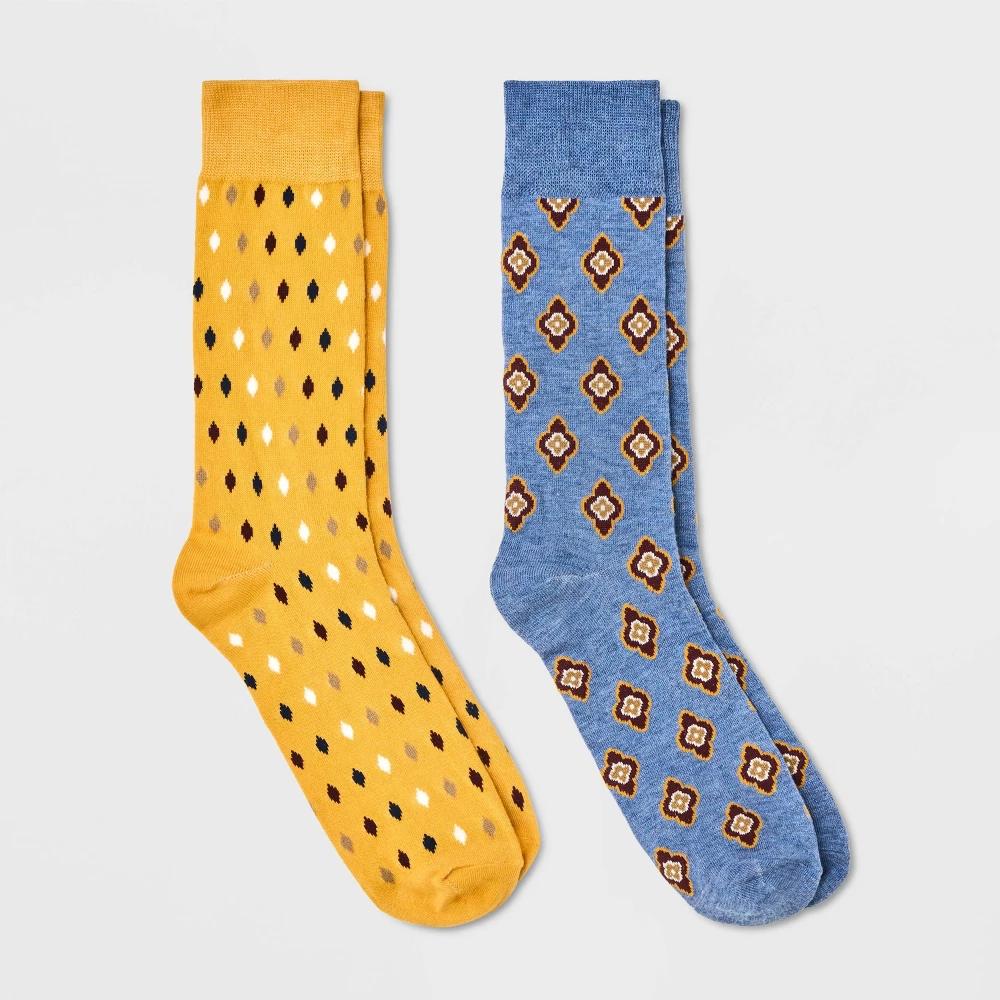 The 3-Pack New Geometric Pattern Novelty Crew Socks from Goodfellow and Co makes a fun addition to your daily essentials. This pack of three pairs of size 7-12 tagless socks comes with one each in a solid, allover striped and a geometrical pattern, giving you stylish options to coordinate with a range of looks. All three pairs are made of a lightweight fabric with a hint of spandex for a comfortable feel, and have a banded construction at the top for a snug, stay-put fit. Plus, they go great with a range of shoes or can also be worn on their own for a cozy day at home. Goodfellow and Co: Where style and fit are always in good company. Color: blue/yellow. Gender: male. Age Group: adult. Material: Recycled Polyester.