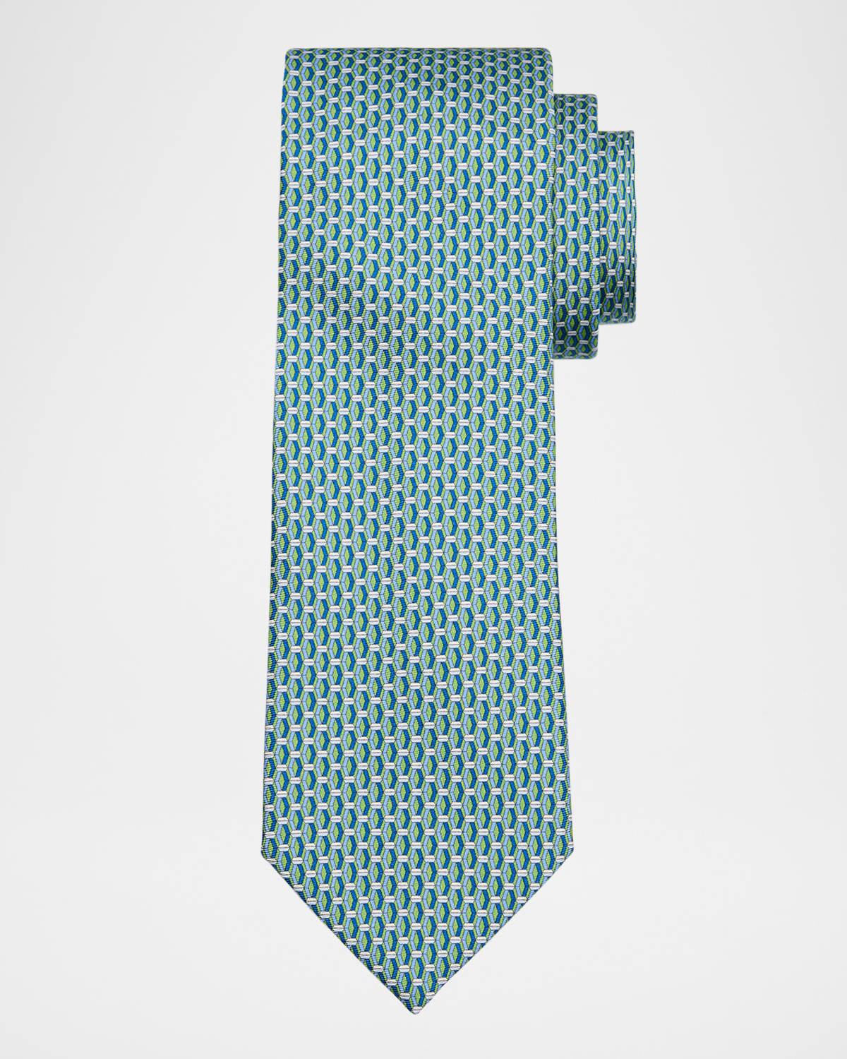 Canali tie in 100% silk with a microgeometric chainlink print Selftie style Silk Dry clean Made in Italy