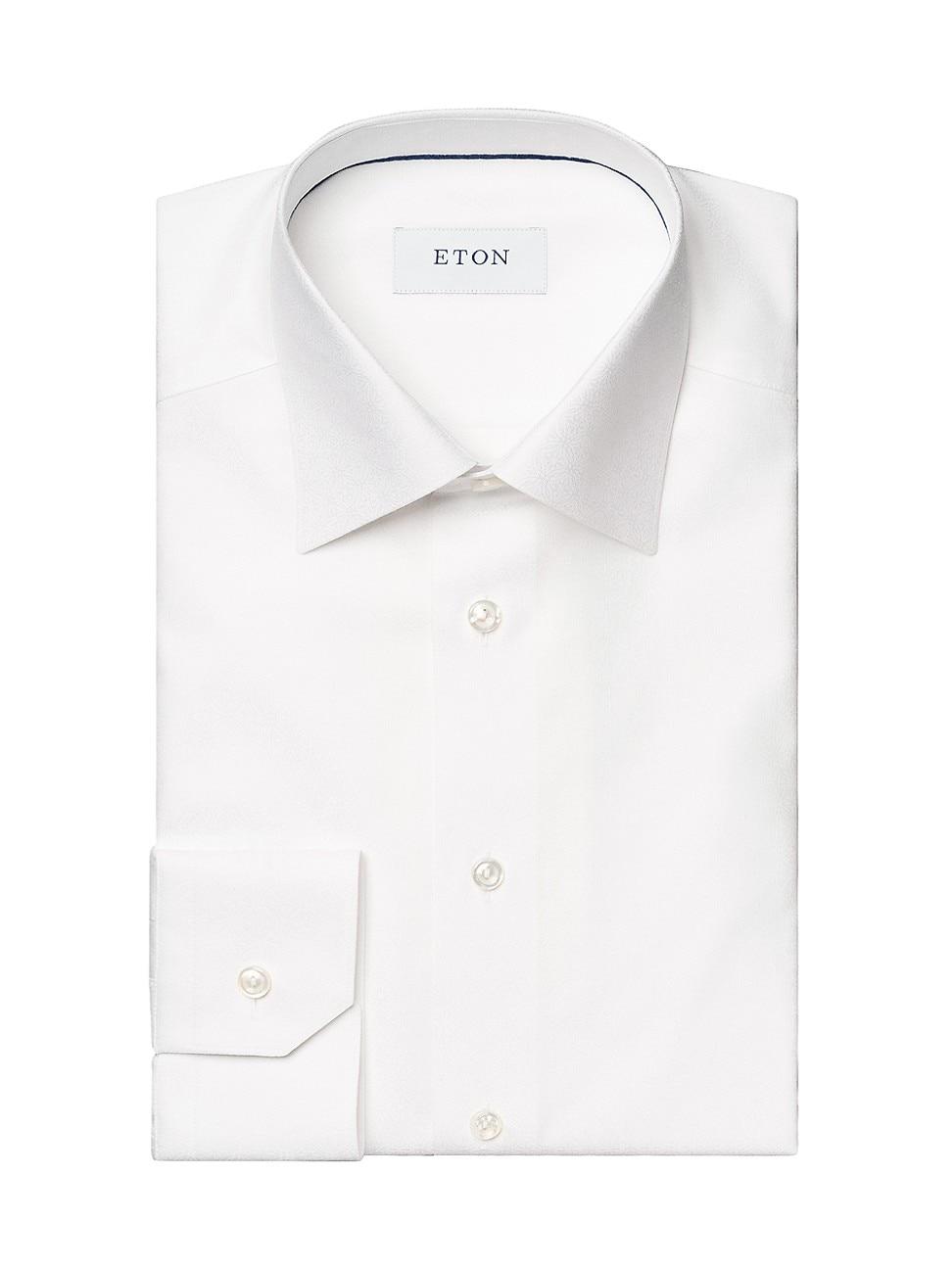 This slim-fit shirt from Eton is crafted of high-performance, crease-resistant cotton and highlights a geometric jacquard design. Mother-of-pearl buttons adorn the front button placket and convertible barrel to French cuffs. Spread collar, collar stays Long sleeves, buttoned barrel-to-French cuffs Front button closure 100% cotton Machine wash Imported SIZE & FIT Slim fit Model measurements: 62 tall, 40 chest, 31 waist Model is wearing a US size 40R ABOUT THE BRAND The Italian fashion house renowned for its eclectic prints and signature paisley motif has been a family-run business since its inception in 1968. Creative Director Marco de Vincenzo continues the brands legacy with the rich textiles and patterns still used in its clothing, accessories and home dcor. Men Luxury Coll - Formal Accessories > Eton > Saks Fifth Avenue > Barneys. Eton. Color: White. Size: 17.