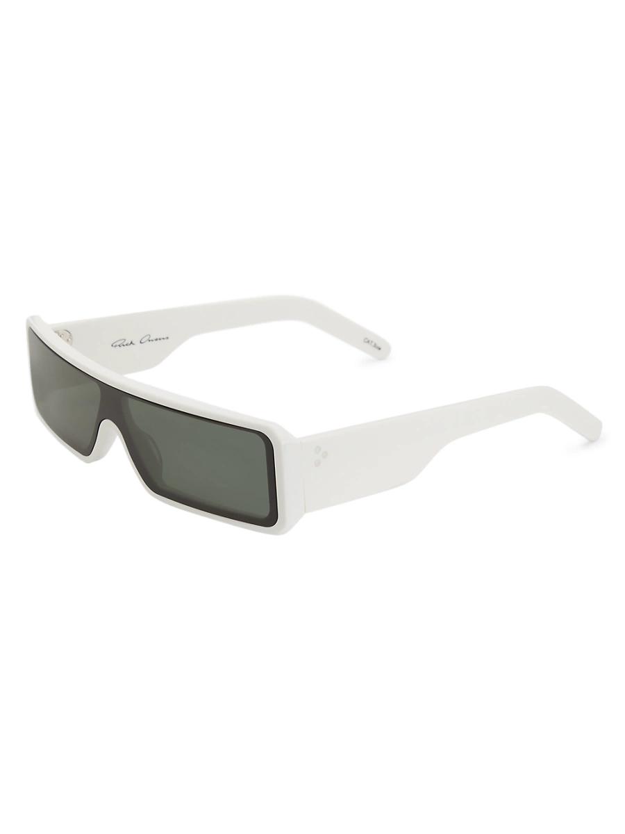 Rick Owens sleek sunglasses feature slim rectangular frames and the signature trip of silvertone riverts on each temple. 100% UV standard Nylon lens Acetate Made in Japan SIZE 70mm lens width 15mm bridge width 130mm temple length. Soft Accessories - Men Sunglasses > Rick Owens > Saks Fifth Avenue > Barneys. Rick Owens. Color: Pearl Forest.