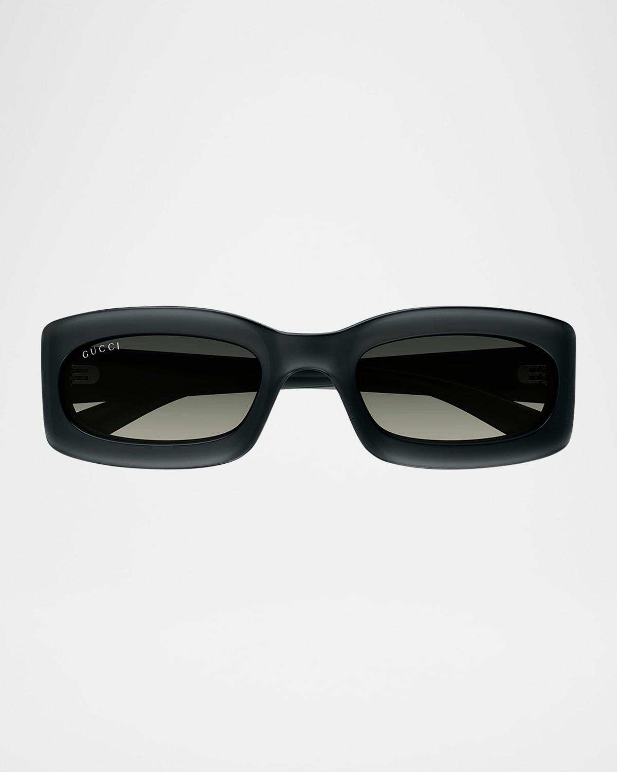 Gucci "GG1786SM" rectangle sunglasses in plastic Lens/bridge/temple (in mm): 54-21-135 Solid-color lenses Right lens logo script Saddle nose bridge Temples with tonal GG logo Tapered arms Plastic 100% UVA/UVB protection Made in Italy Proposition 65 warning for California residents