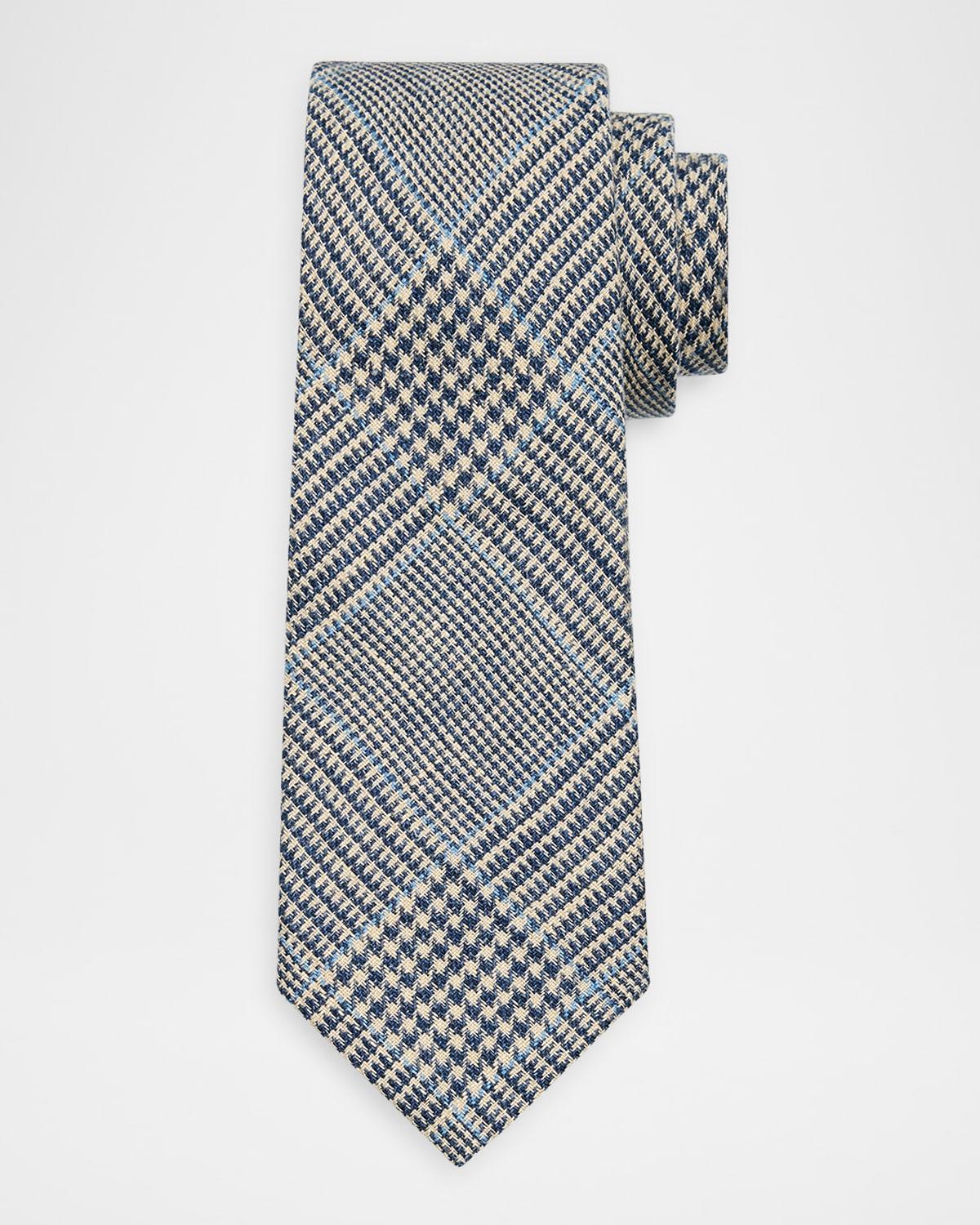 Men's Linen and Mulberry Silk Glen Plaid Tie