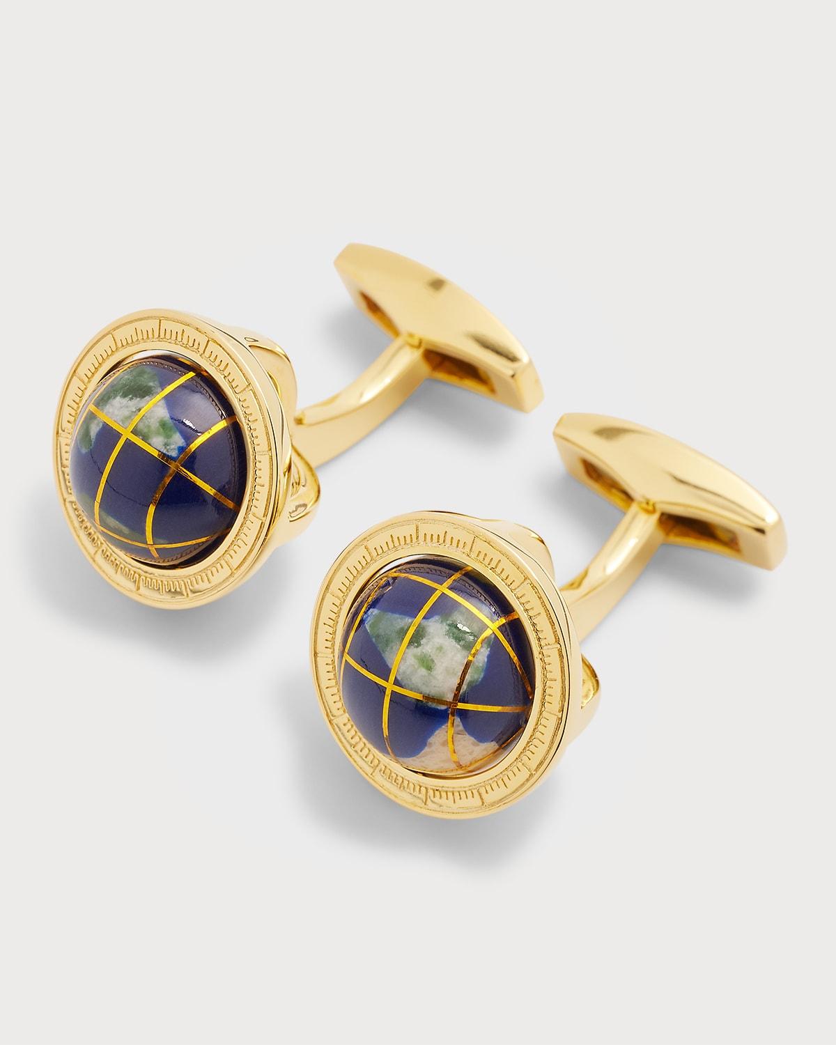 Mens Globe Mosaic 18K Yellow Gold-Plated & Lapis Cufflinks