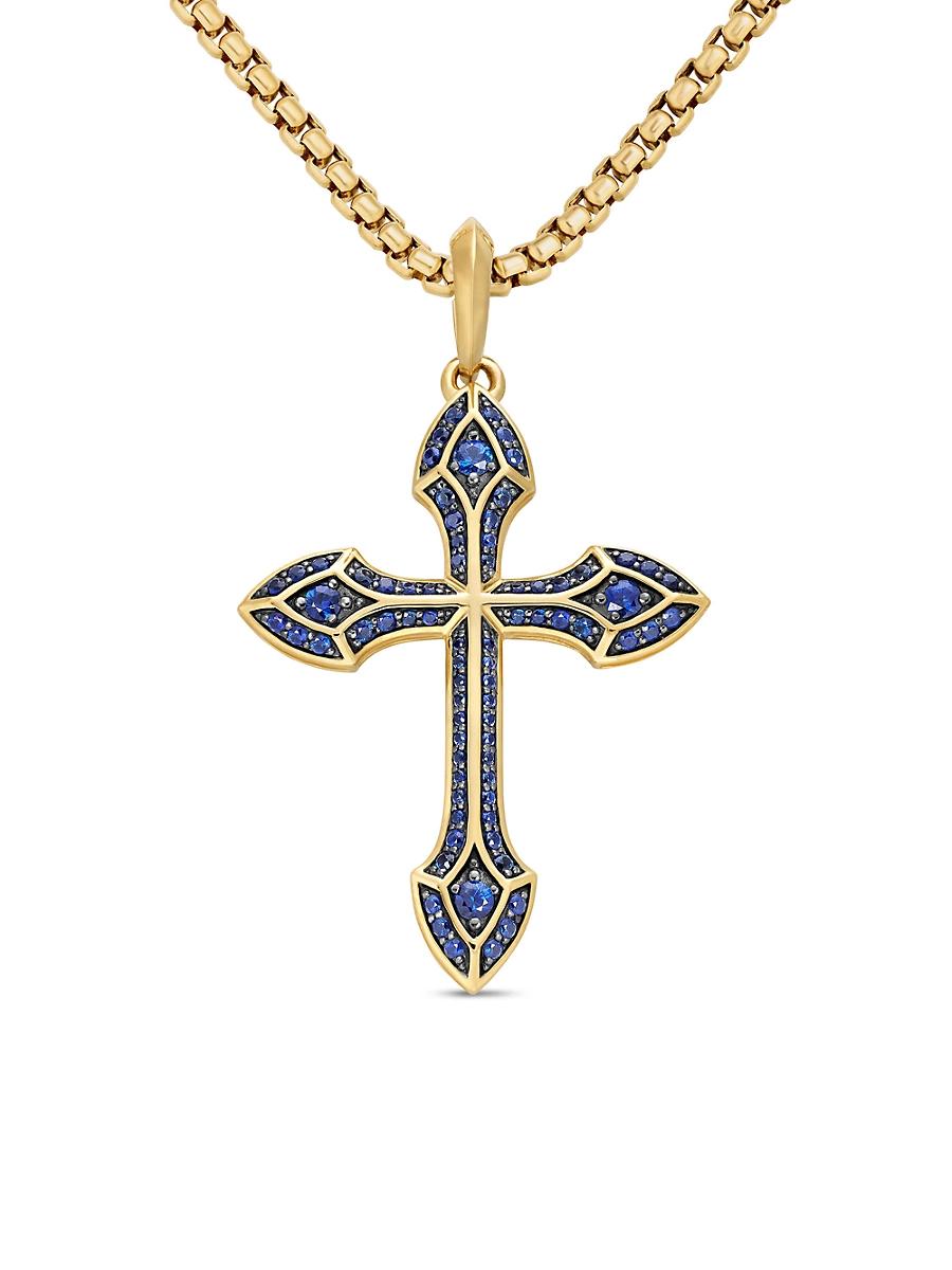 Captivating sapphires enhance this David Yurman gothic cross amulet. Pav sapphires, 0.46tcw 18K yellow gold Imported SIZE Pendant, 36.5 x 27.5mm ABOUT THE BRAND David, a sculptor, and his wife, Sybil, a painter, launched their innovative jewelry brand in 1980 in New York City. Since then, the American design house has pioneered cutting-edge techniques. Today, with their son, Evan, the Yurmans continue to deliver timeless jewelry and fragrance collections inspired by nature, art, ancient symbols, and Manhattans stunning architecture. Lsd Jewelry - David Yurman > David Yurman > Saks Fifth Avenue > Barneys. David Yurman. Size: 0.