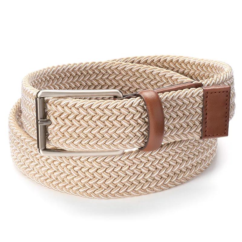Details make the difference. A polished buckle and leather construction let this mens Grand Slam belt add another element of style to your look. Two-tone finish Gunmetal-tone buckle 1 3/8-inches wide Elastic, full-grain cowhide Spot clean Imported Size: 38. Color: Beig/Khaki. Gender: male. Age Group: adult. Pattern: Solid.