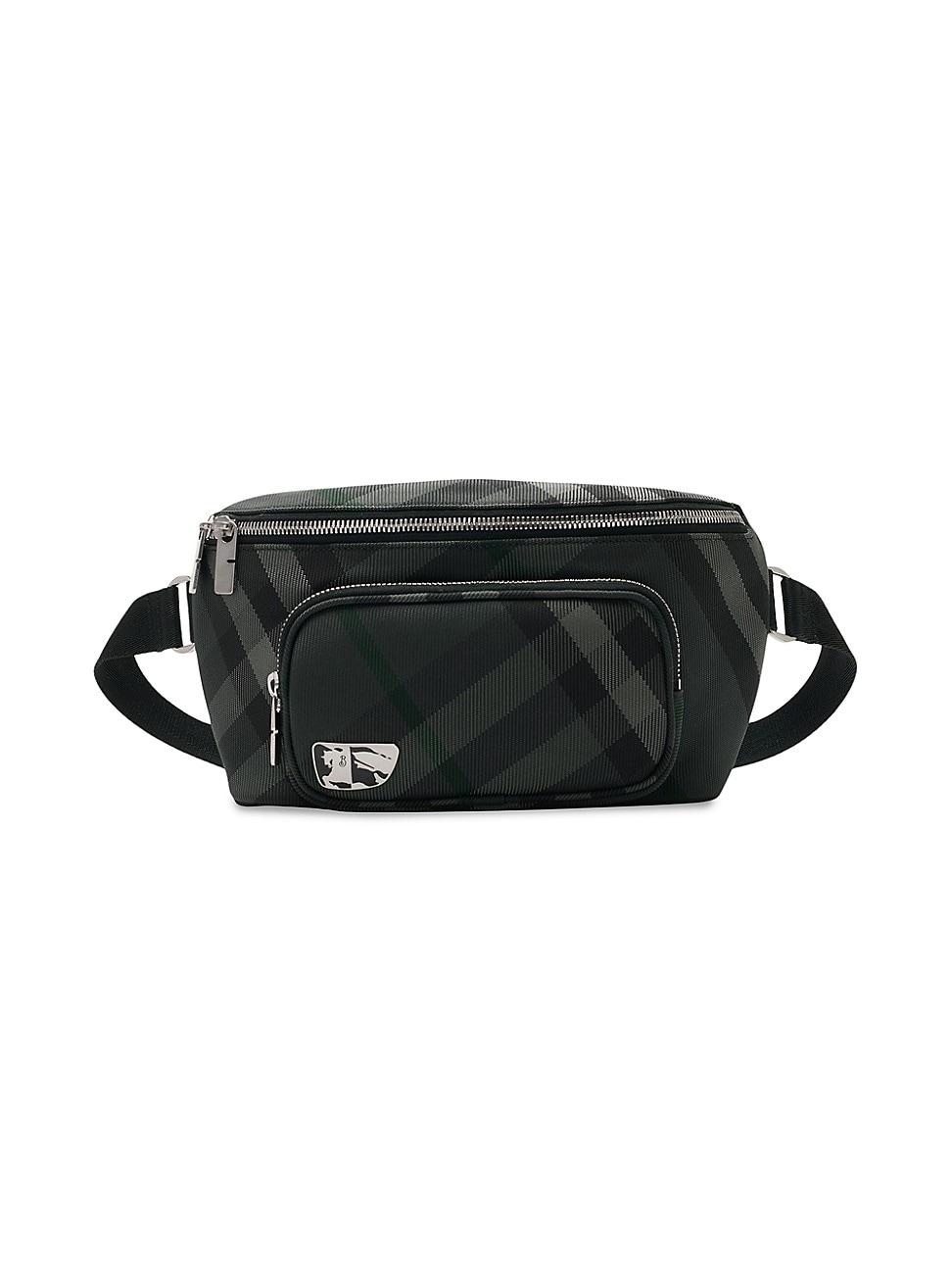 Crafted with Burberrys iconic check pattern, this durable belt bag features a ribbed texture and mesh back panel. A two-way zip closure, exterior zip pocket, and shield plaque adorned with the brands equestrian knight design offer practical functionality. Adjustable strap Exterior: one zip pocket Two-way zip closure Polyamide/polyurethane/polyester Trim: leather Lining: polyamide Made in Italy SIZE About 10.6W x 2.8D x 5.5H ABOUT THE BRAND Founded in 1856 by 21-year-old Thomas Burberry, the brand set out with a mission to stylishly protect against British weather-and Burberrys iconic trench coat was born. In the 1920s, its renowned check pattern was introduced as the coats lining. Today, under Creative Director Daniel Lee, the heritage brand continues to evolve and create timelessly classic mens, womens and kids pieces, along with beauty. Men Accessories - Designer Accessories > Burberry > Saks Fifth Avenue > Barneys. Burberry. Color: Charcoal.