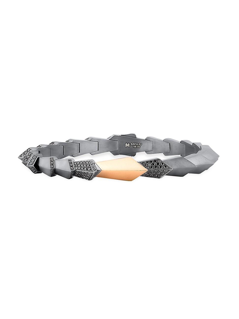 From the Guard of Men Collection. Accented with glittering black diamonds, Molus bracelet is handcrafted of sterling silver and 18K rose gold. This sleek accessory is inspired by historical armor forms and the remains of ancient war equipment. Black diamonds, 1.45 tcw Sterling silver/18K rose gold Box clasp Imported SIZE About 2.5 diameter. Fashion Jewelry - Semi Prec Coll C > Molu > Saks Fifth Avenue > Barneys. Molu. Color: Rose Gold.