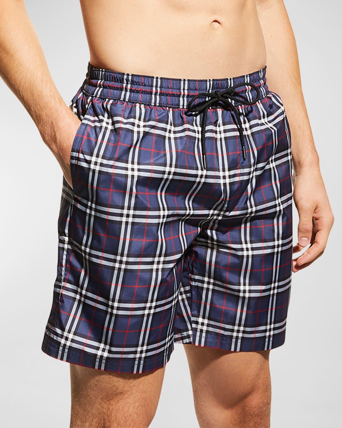Drawstring swim shorts in classic checked pattern. Elasticized drawstring waist Back welt pocket Pull-on style Lined Polyester Machine wash Imported SIZE & FIT Rise, about 7 Inseam, about 18 ABOUT THE BRAND Founded in 1856 by 21-year-old Thomas Burberry, the brand set out with a mission to stylishly protect against British weather-and Burberrys iconic trench coat was born. In the 1920s, its renowned check pattern was introduced as the coats lining. Today, under Creative Director Daniel Lee, the heritage brand continues to evolve and create timelessly classic mens, womens and kids pieces, along with beauty. Men Advcd Dsgnr - Burberry > Burberry > Saks Fifth Avenue > Barneys. Burberry. Color: Blue. Size: Medium.