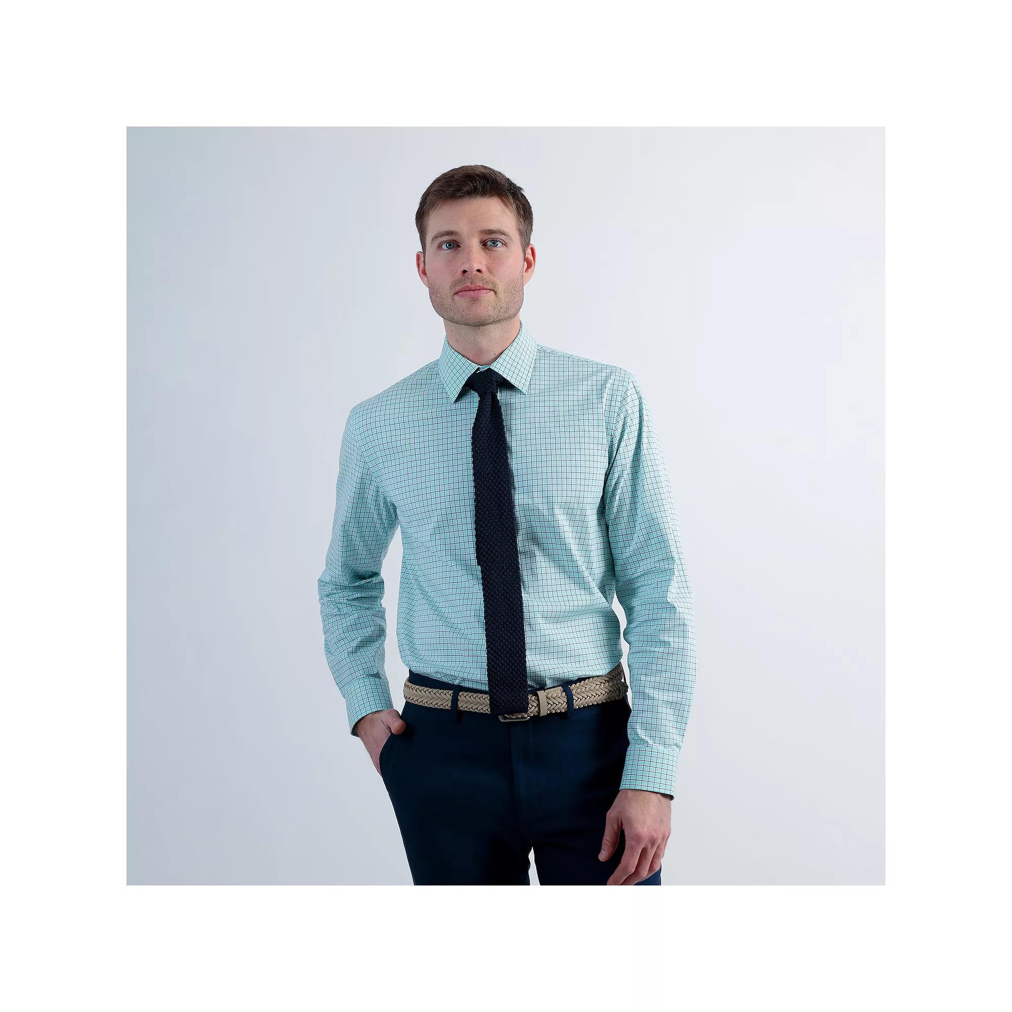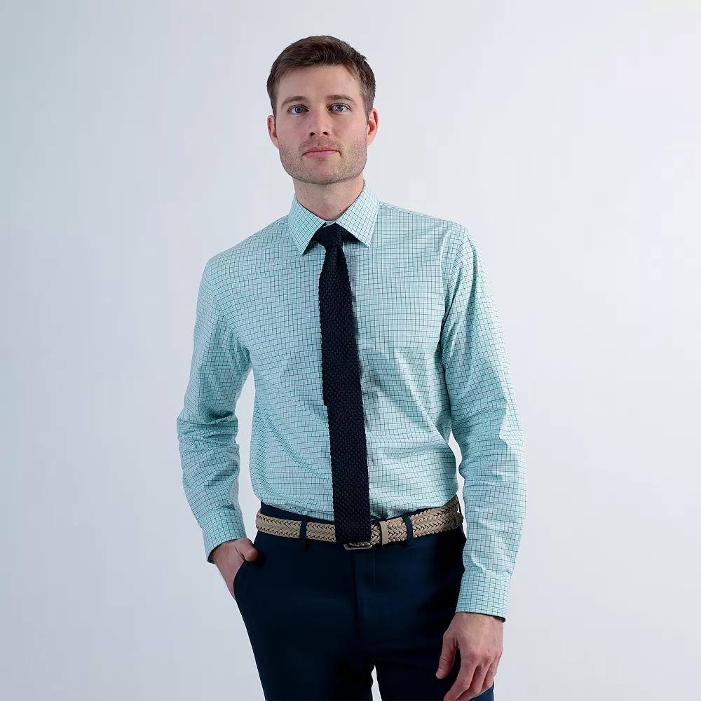 Well-dressed man. Look your best in this handsome men's Haggar dress shirt that's sure to become a formal favorite. Click on this MEN'S GUIDE to find the perfect fit and more! Stretch fabric technology Wrinkle resistant fabric Spread collar flares to accommodate wider tie knots Long sleevesFIT & SIZING Classic fit Motion Ease collar adjusts up to 1/2-inch for comfortFABRIC & CARE Cotton, spandex Machine wash Imported Size: 18.5-34/35. Color: Teal Grid. Gender: male. Age Group: adult.
