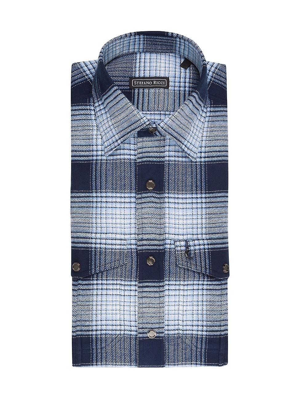 Stefano Ricci Rust features a soft one button collar. Driving casual shirting to new heights, this pure cotton item is enhanced with signature galvanised palladium snap buttons and accessories. The dapper patch pockets and double stitching accentuate the plaid design for the epitome of off-duty style. 100% Cotton Rust collar Eagle head in octagonal frame accessory One button mitered cuffs Two patch pockets Double stitching on all borders Galvanised decorative hardware octagonal snap buttons Octagonal loop accessory Made in Italy. Lsd Mens - Mens Rtw Lsd Mp > Stefano Ricci > Saks Fifth Avenue > Barneys. Stefano Ricci. Color: Blue White. Size: 18.