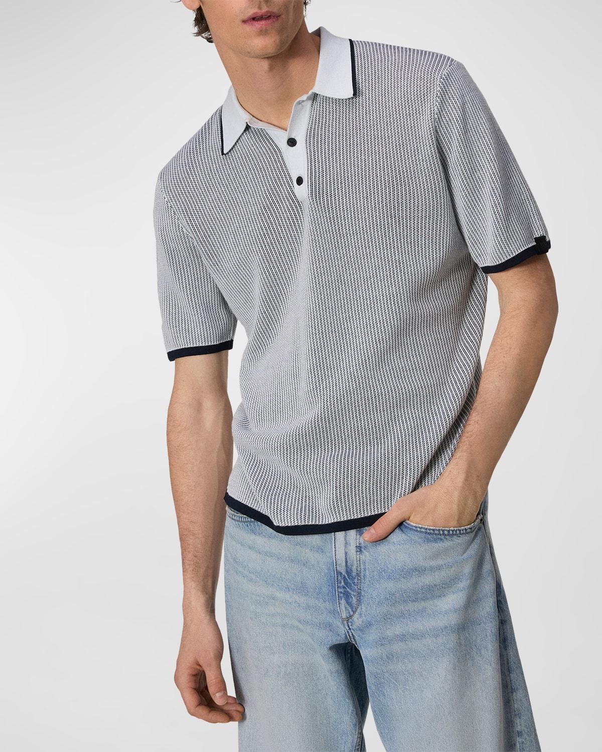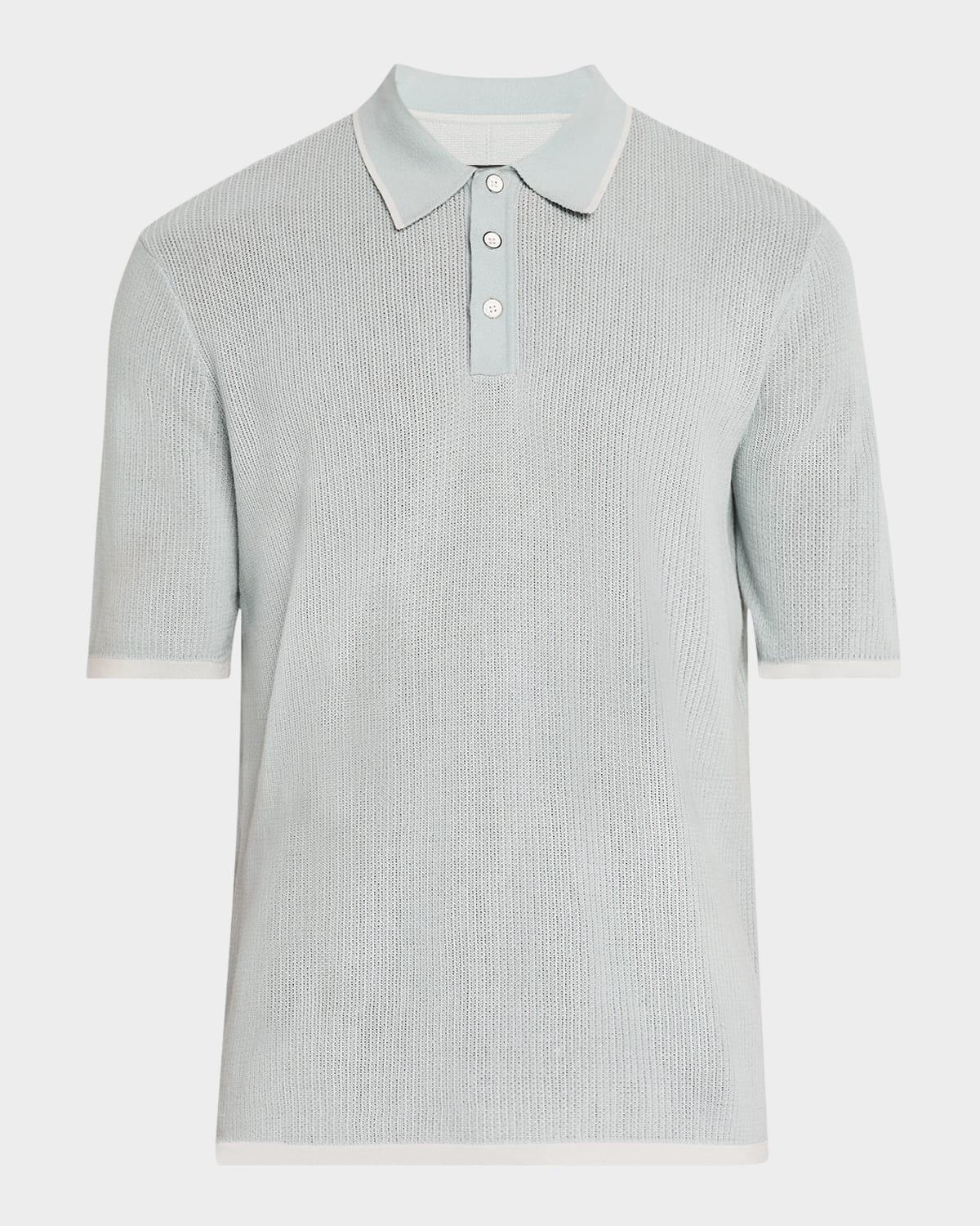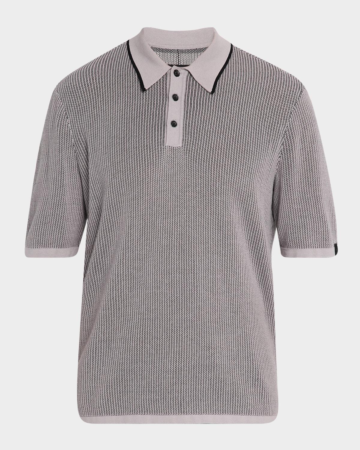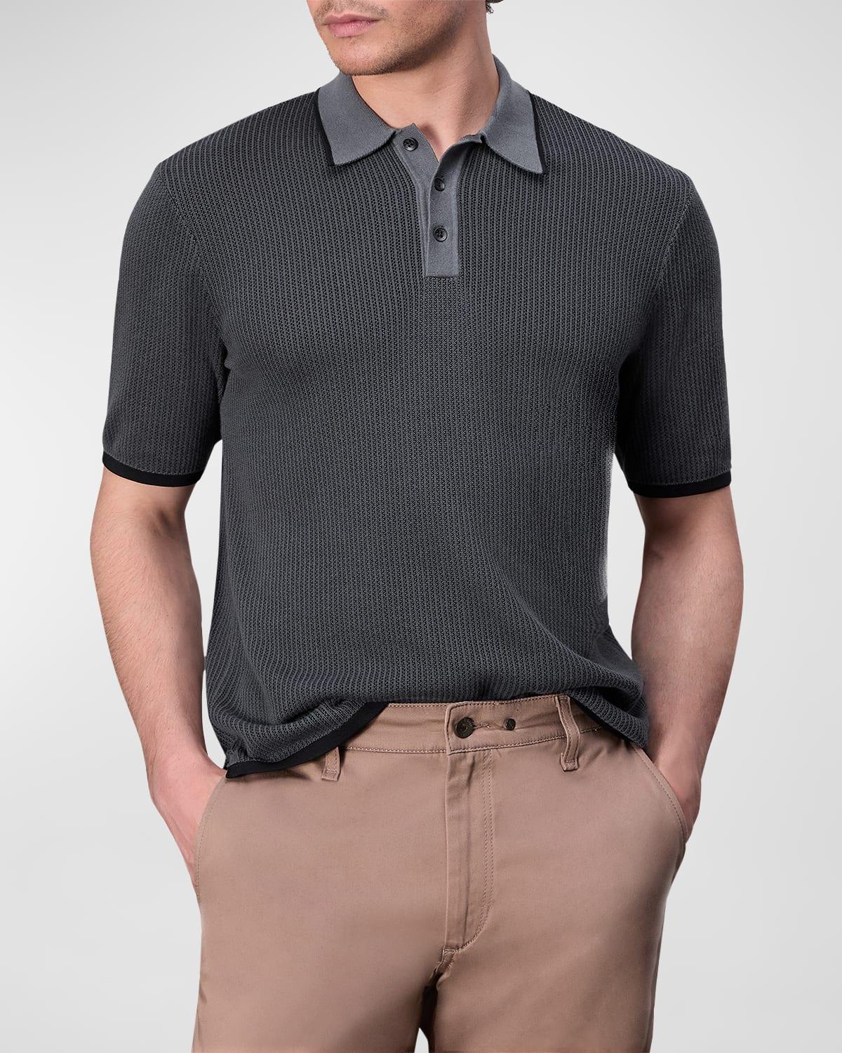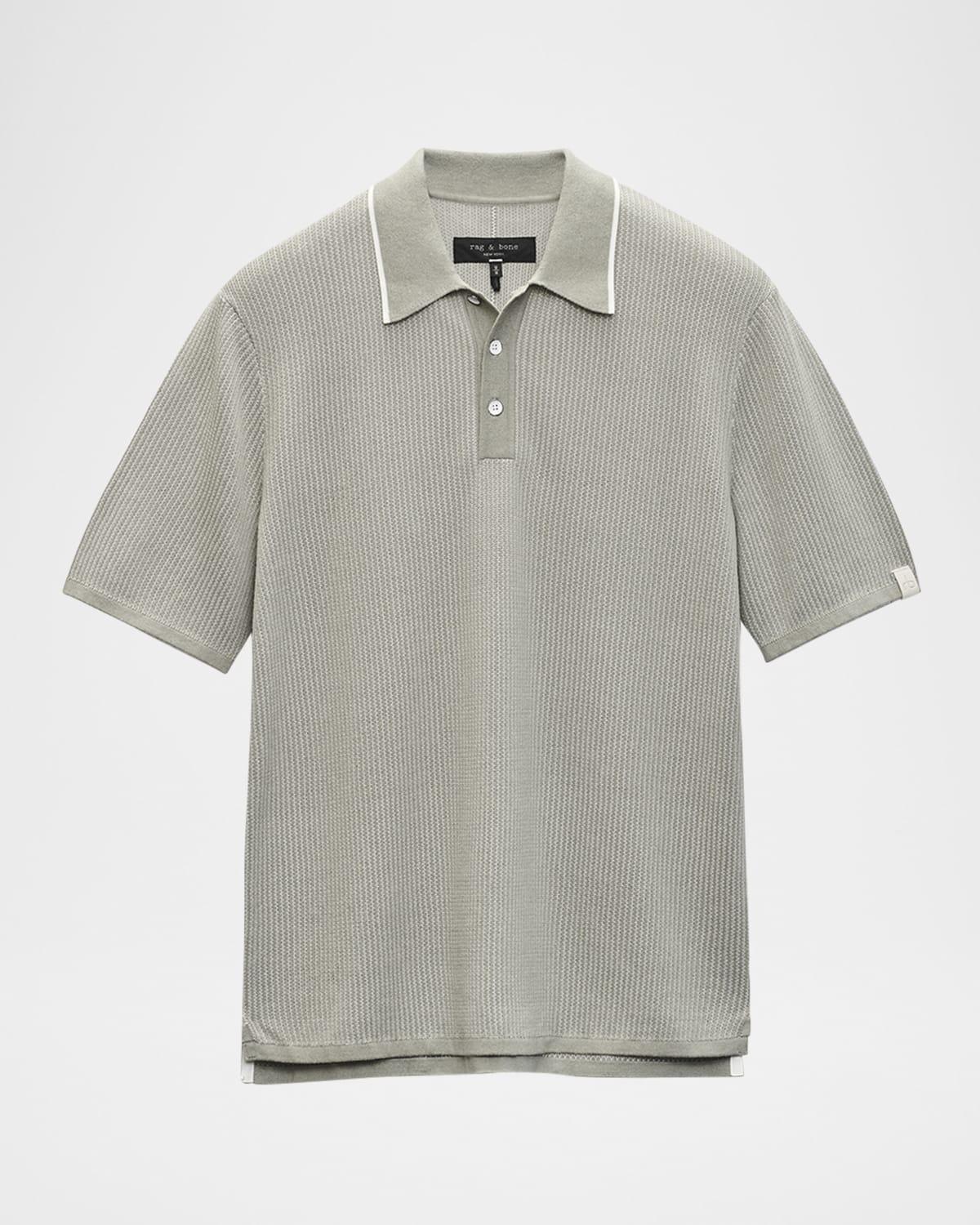 A soft knit made from drapey, cotton-rich yarns brings a hint of texture to this polo thats as ready for a relaxed weekend as you are. 26 1/2 length (size Medium) Button half-placket Spread collar Short sleeves 71% cotton, 22% viscose, 7% nylon Machine wash, dry flat Imported