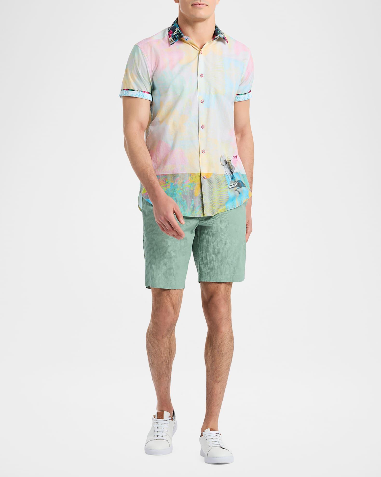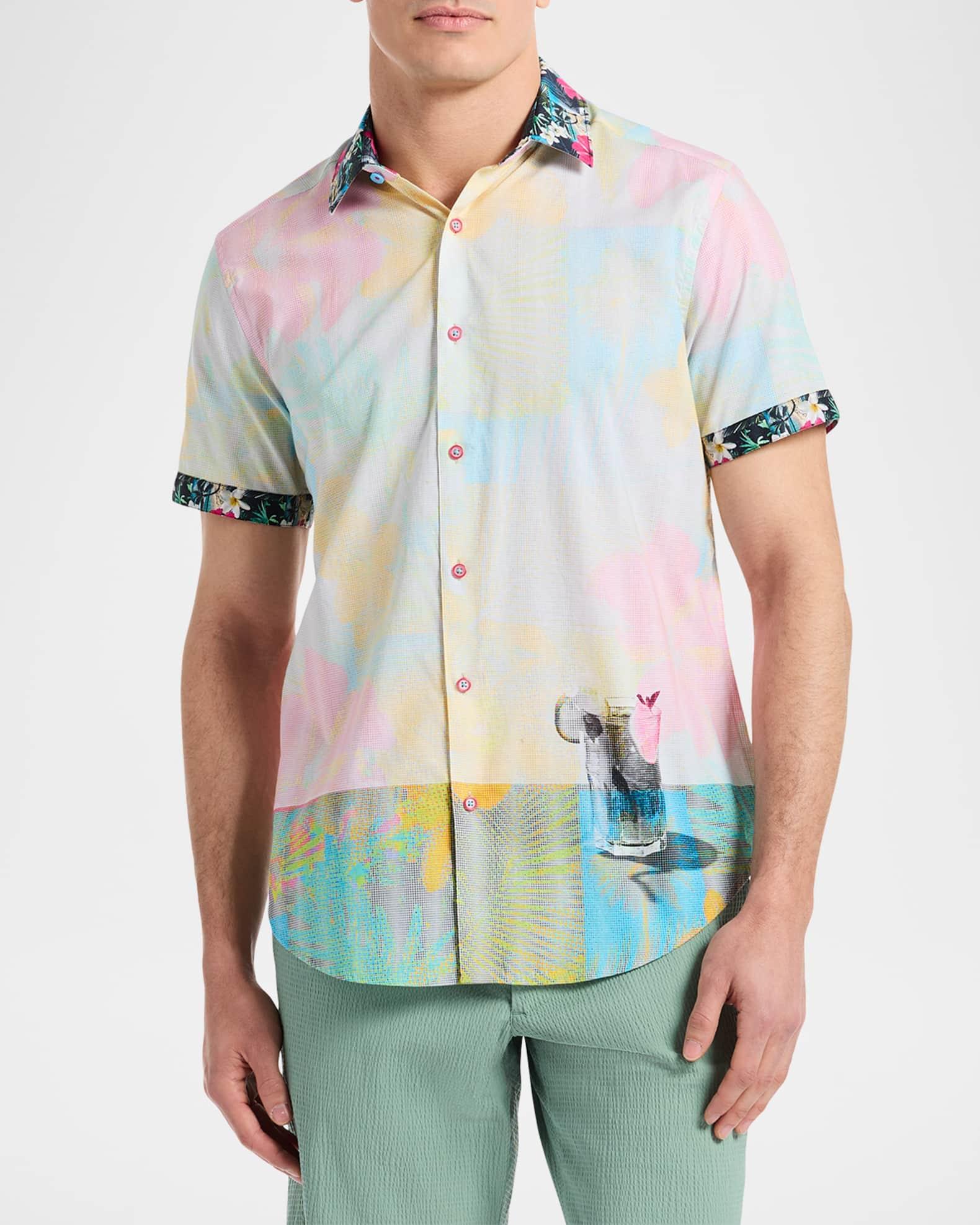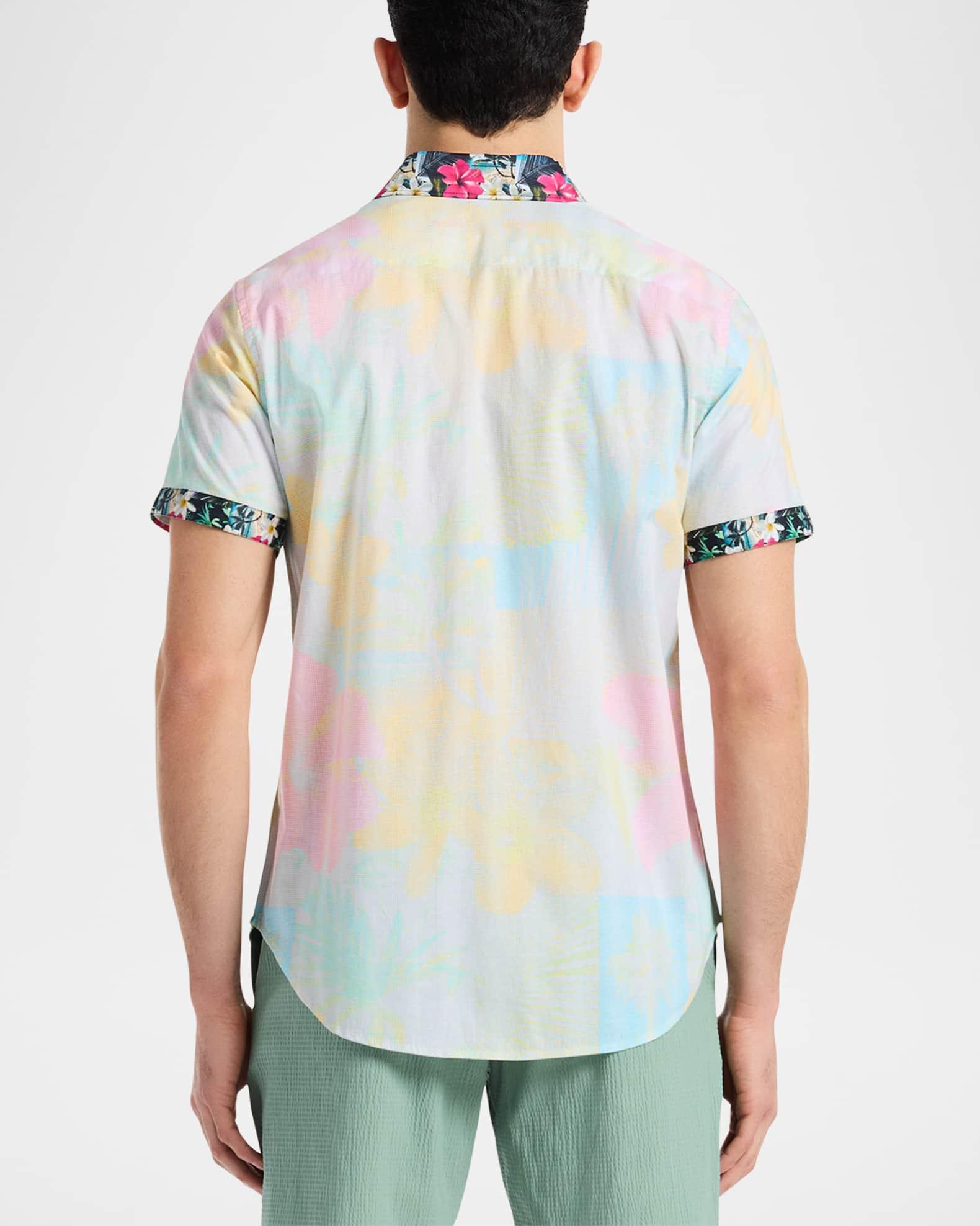 Robert Grahams Haze cotton shirt is designed with a pixelated print and floral trim. Spread collar Short sleeves Button-front closure 100% cotton Machine wash Imported SIZE & FIT Model measurements: 62 tall, 40 chest, 31 waist Model is wearing a US size Medium. Mens Modern Coll & Outer - Contemp Classic Collecti > Robert Graham > Saks Fifth Avenue > Barneys. Robert Graham. Size: Small.
