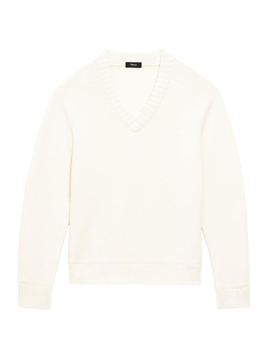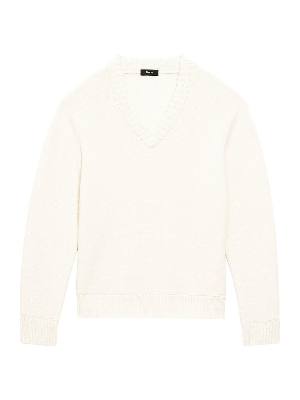 Crafted of a heavy wool and cashmere blend, this Theory sweater highlights a V-neck silhouette, detailed with rib-knit trim. V-neck Long sleeve Rib-knit trim Pulls over 90% wool/ 10% cashmere, exclusive of trim Dry clean Imported SIZE & FIT About 26.5 from shoulder to hem Model measurements: 62 tall, 40 chest, 31 waist Model is wearing a US size Medium ABOUT THE BRAND For two decades, Theory has nailed the art of polished dressing through its well-tailored pieces. Innovative fabrications and an elevated, minimalist aesthetic make the brands separates a wardrobe main story season after season. Mens Modern Coll & Outer - Theory > Theory > Saks Fifth Avenue > Barneys. Theory. Color: Winter White. Size: XXL.