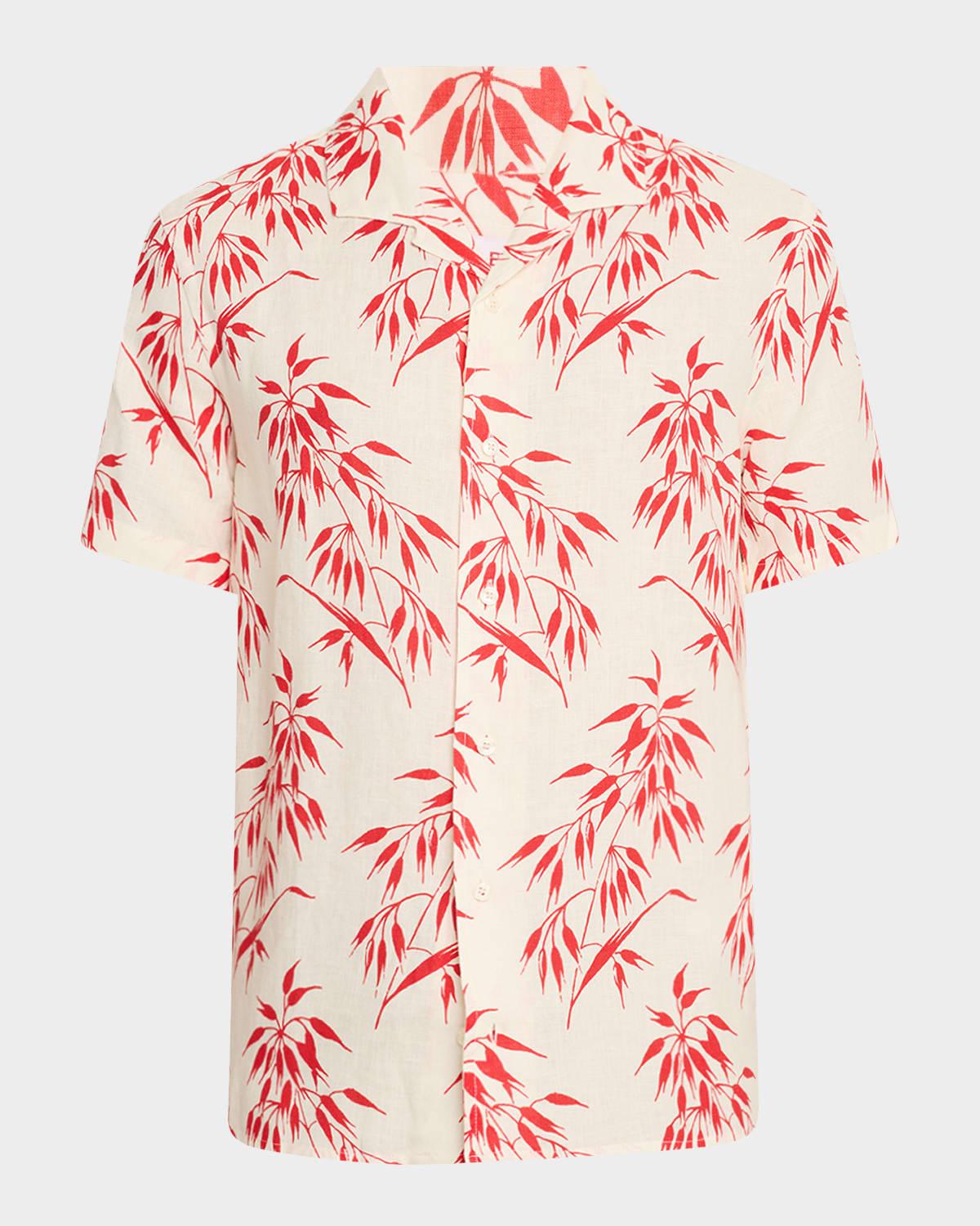 Orlebar Brown "Hibbert" bamboo print linen sport shirt Spread collar Short sleeves Classic fit Full button-front Linen Machine wash cold Made in Portugal