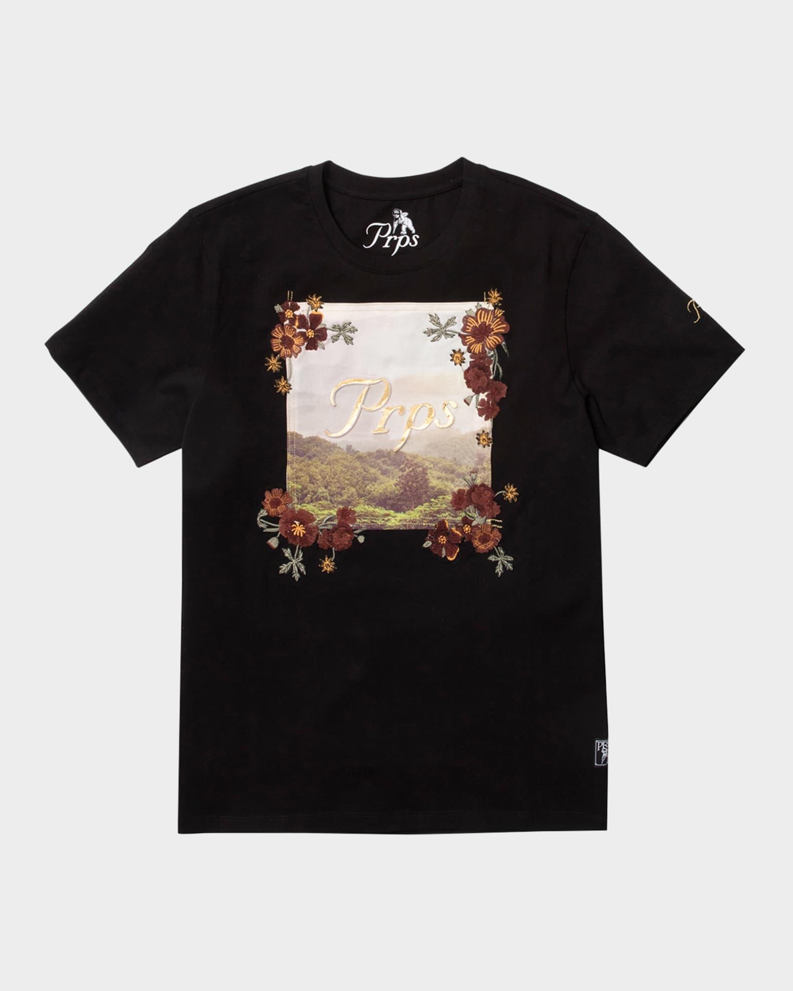 PRPS Hickory Tshirt featuring a scenic patch with floral appliqu border Bruised, Never Broken embroidered motto at back hem Crew neckline Short sleeves Classic fit Pullover style Cotton Machine wash cold, wash inside out, wash separately Imported