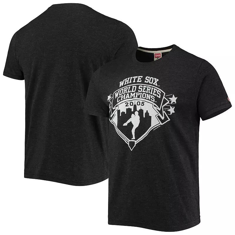 Celebrate that amazing moment when the Chicago White Sox hoisted the Commissioners Trophy with this 2005 World Series Champions T-shirt from Homage. Exciting graphics on the front are perfect for commemorating the great players and coaches who helped the team win it all. The tri-blend material will keep you comfortable when youre honoring the hard work and dedication it took to become World Series champions.Celebrate that amazing moment when the Chicago White Sox hoisted the Commissioners Trophy with this 2005 World Series Champions T-shirt from Homage. Exciting graphics on the front are perfect for commemorating the great players and coaches who helped the team win it all. The tri-blend material will keep you comfortable when youre honoring the hard work and dedication it took to become World Series champions.PRODUCT FEATURESBrand: HomageScreen print graphicsCrew neckOfficially licensedScreen print graphicsMaterial: 50% Polyester/25% Cotton/25%RayonMachine wash, tumble dry lowShort sleeveImported Color: Black. Gender: male. Age Group: adult.