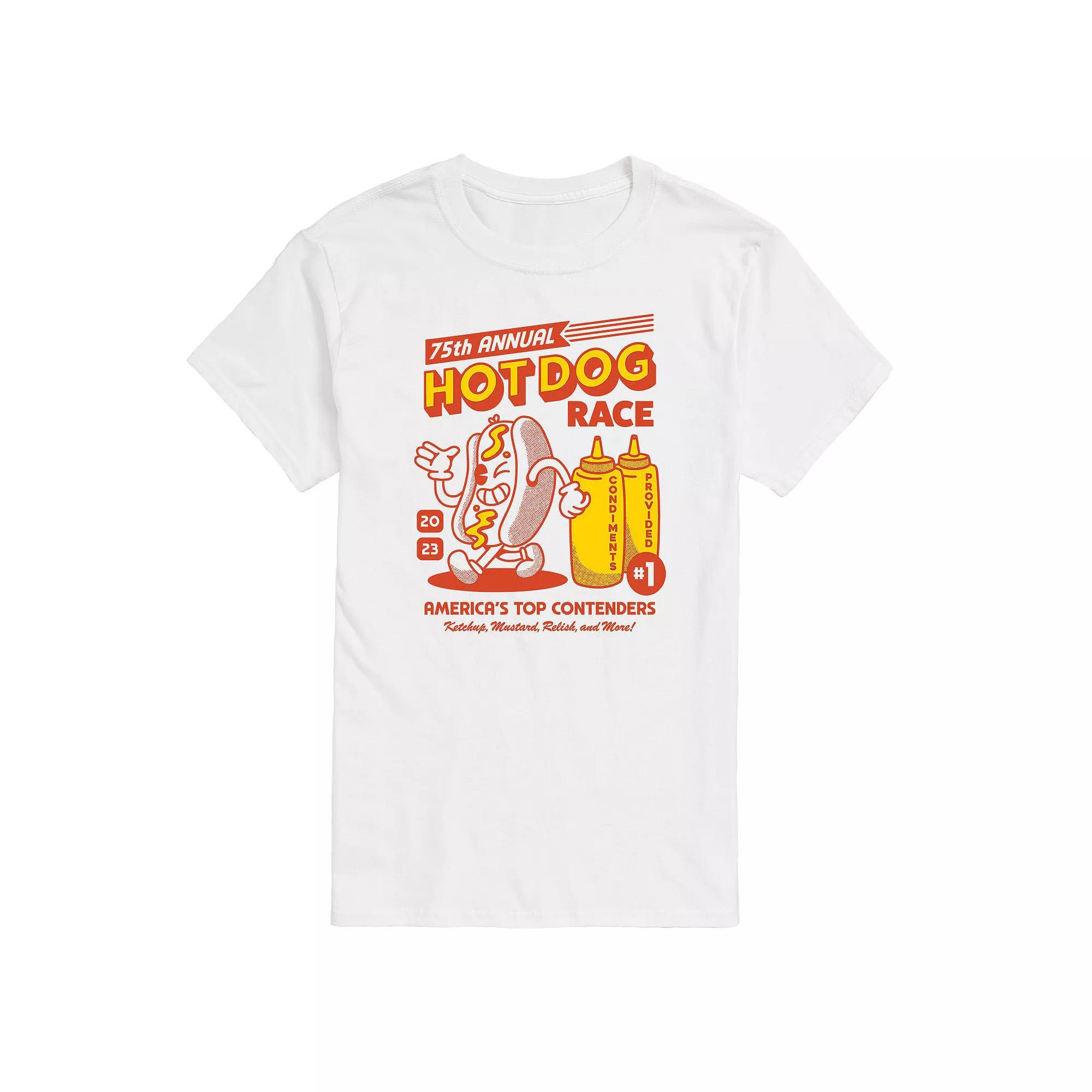 Elevate your graphic tee collection with this Hot Dog Race Graphic Tee. FEATURES Short sleeveFABRIC & CARE Solid colors: cotton; Heather colors: cotton, polyester Machine wash Imported Color: White. Gender: male. Age Group: adult.