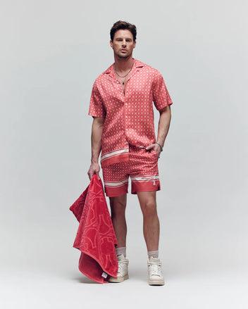 Breathable, sustainable, wearable to the max – when it comes to tencel - feeling is believing. With its perfect fit, durable woven feel, and attention-to-detail graphics, the Hunter shirt is an easy instant-classic addition to your warm weather rotation.Complete the matching setWoven - 100% tencelMade in ChinaPremium TENCEL™ fabricAllover graphic printOpen spread collarStripes & wordmark at hemMother-of-Pearl buttonsModel height is 5'10 (approx. 178cm) and is wearing a size medium.