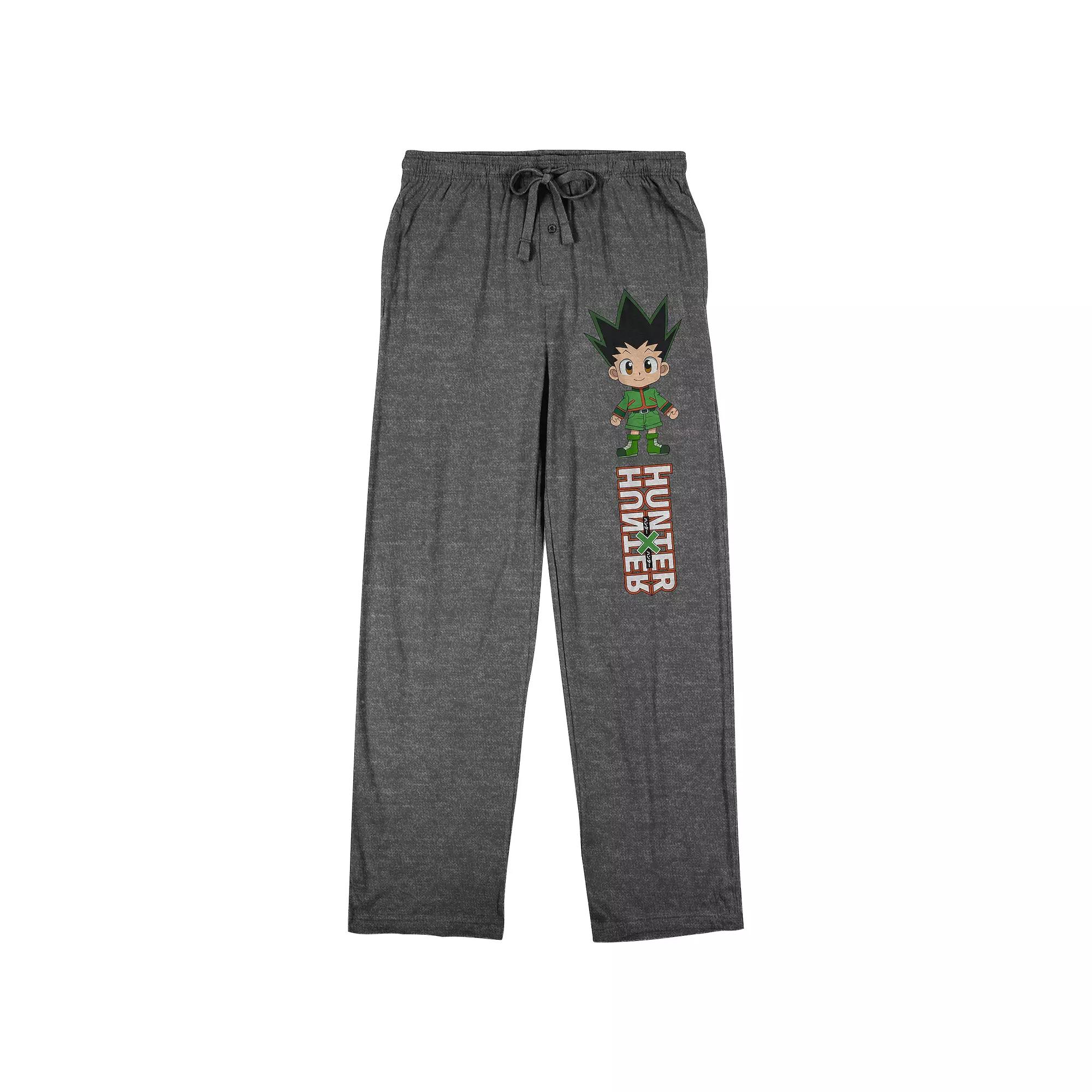 Hit your mark with these mens Hunter X Hunter pajama pants. Hit your mark with these mens Hunter X Hunter pajama pants. Drawstring, elastic waistband Fly frontFIT & SIZING Approximate 32-in. inseam Relaxed fitFABRIC & CARE Cotton Machine wash Imported Color: Black. Gender: male. Age Group: adult. Pattern: Graphic. Material: Fleece.