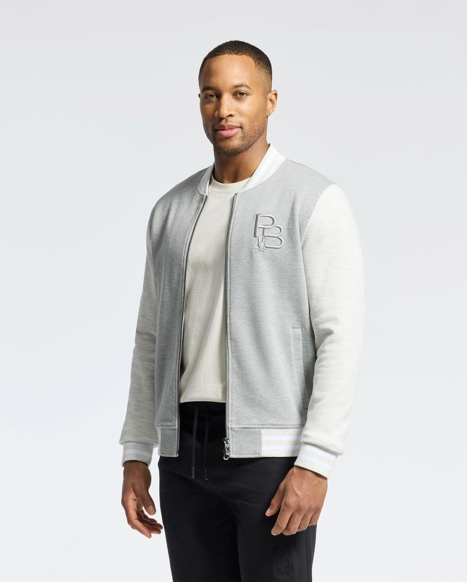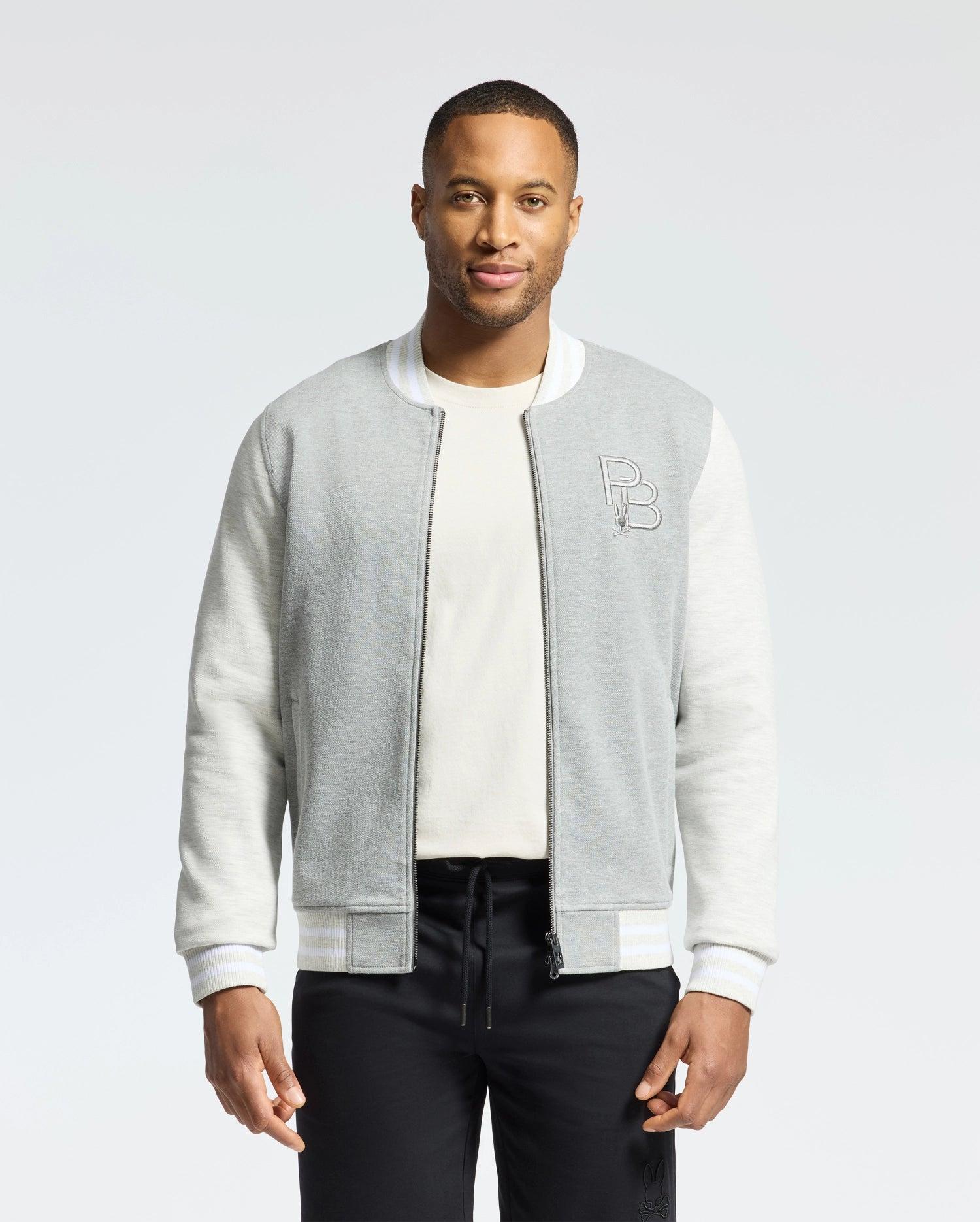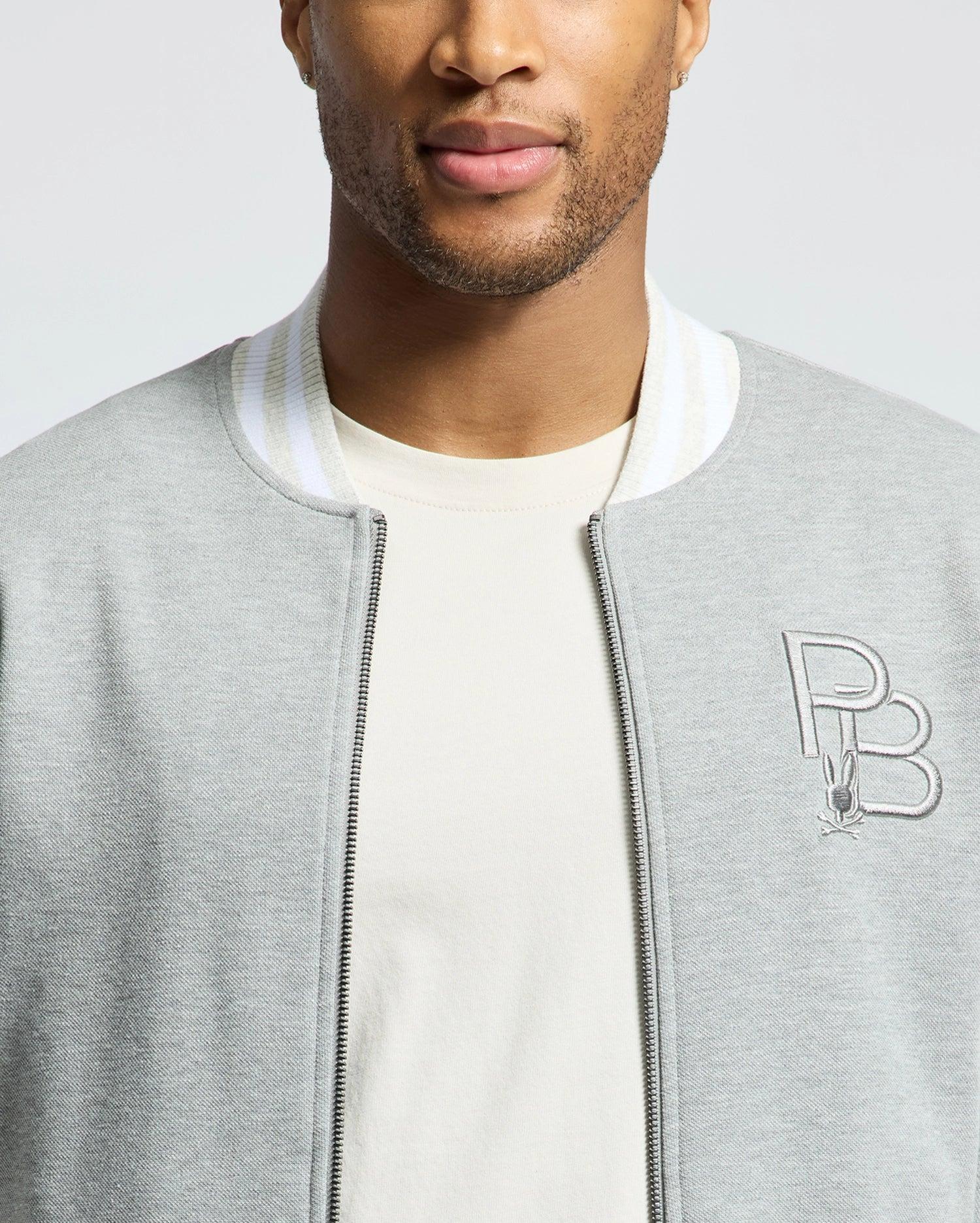 Precision-embroidered pique style in a premium cotton-blend bomber built to impress. Try on two-toned style in a true-blue classic fit.Pique Fabric - 50% Cotton, 46% Polyester, 4% SpandexMade in ChinaRegular fitMélangeRaise-embroidered BunnyTwo-way zip closureBack Raised Direct Embroidered Bunny Lining with Inner Pocket and Neon Details Front Pocket with Inner Print Ribbed Collar and CuffsModel height is 6'0 (approx. 183cm) and is wearing a size medium.